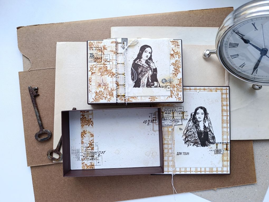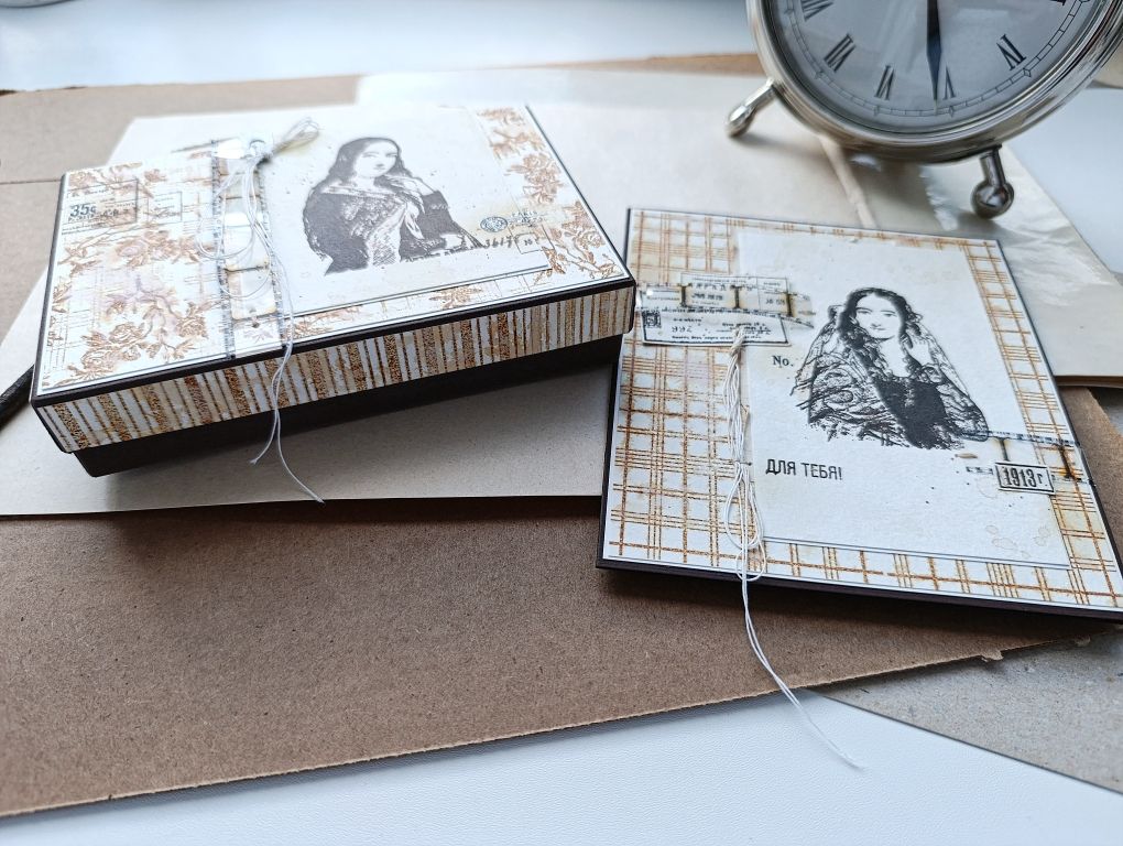 Кто же не любит винтаж!? Думаю каждый второй скрапер, уж точно, является его почитателем, и я не исключение! Сегодня подготовила для вашего вдохновения комплект из коробочки для подарка и открытки в винтажном стиле.