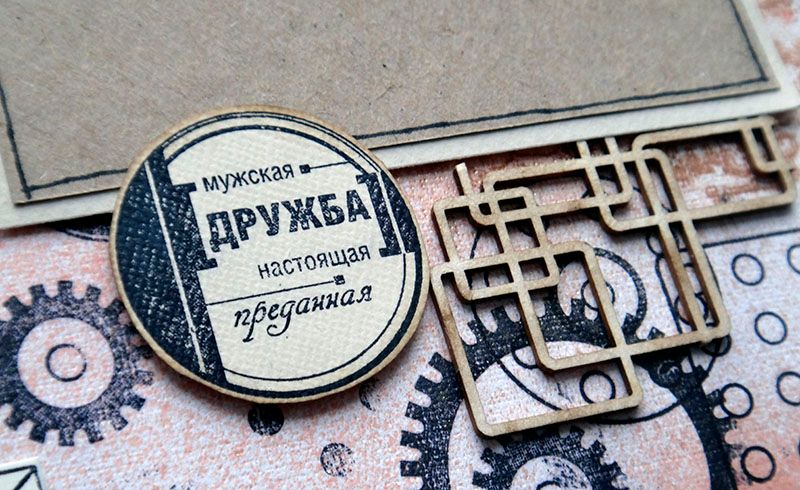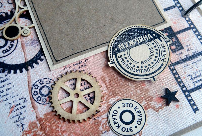 А вот еще один набор штампов – «Мужской мир», из него я использовала штампы с надписями и стрелочки.