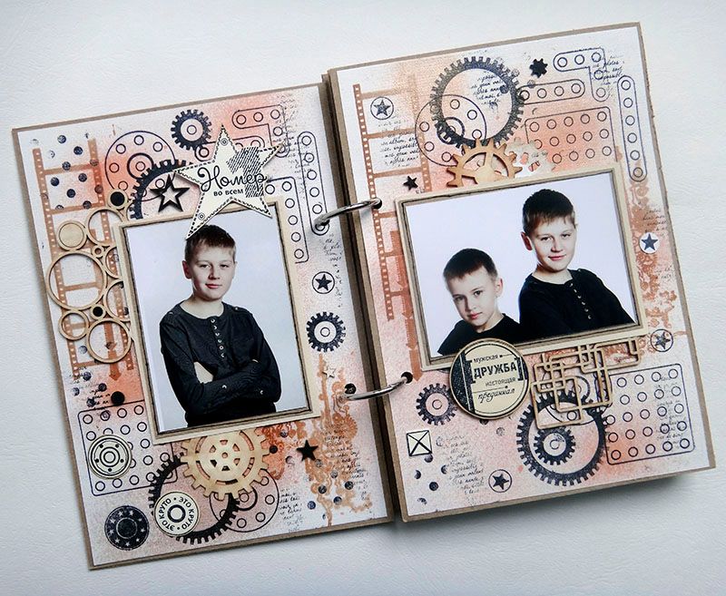 Сколько штампов нужно применить для создания альбома? А сколько можно? Давайте посмотрим мой небольшой альбом про двух мальчишек и вместе посчитаем!