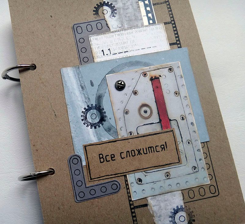На первой обложке гордо красуется надпись – «Все сложится» На задней вырезанные элементы из конструктора и немного штампов.
