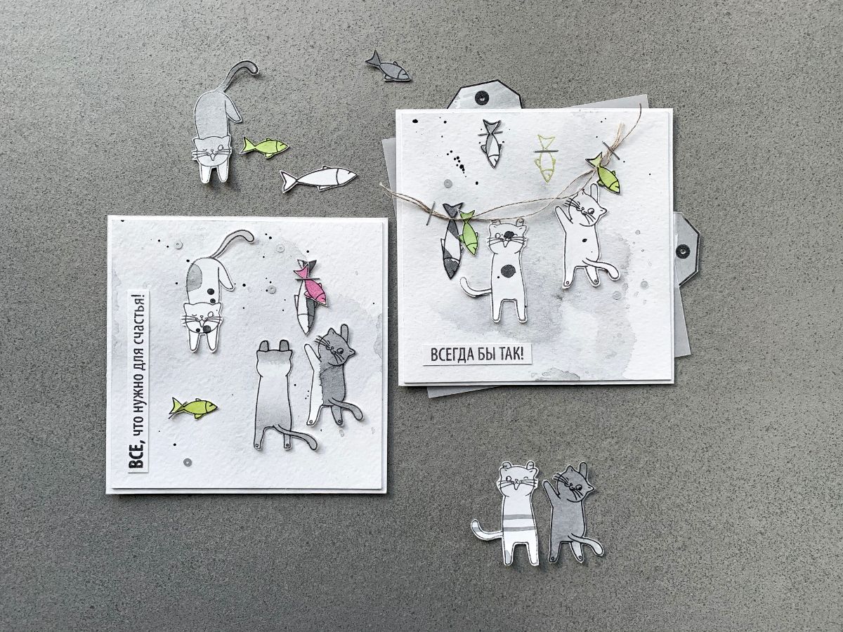 Вот такая парочка открыток. Кстати, рыбки раскрашены дистресс чернилам