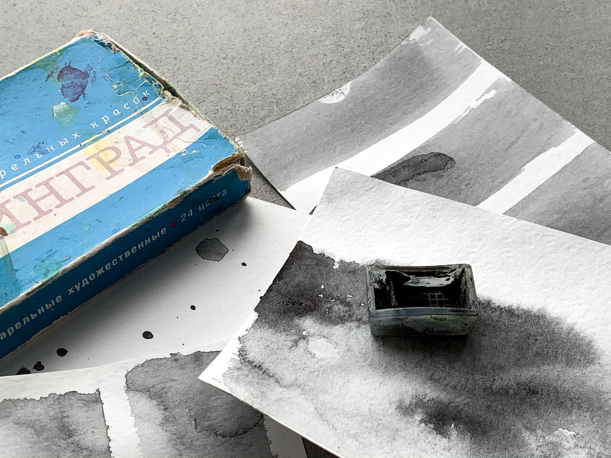 Той же акварелью добавляю цветовых пятен, брызш и штрихов.