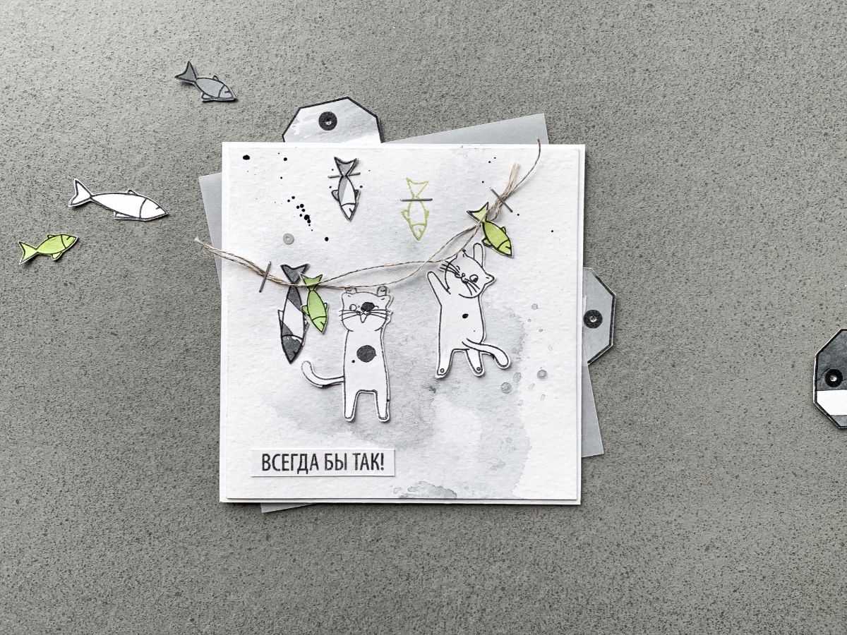 Штамп "Хорошо висим" - моя новая любовь и у меня серия открыток!