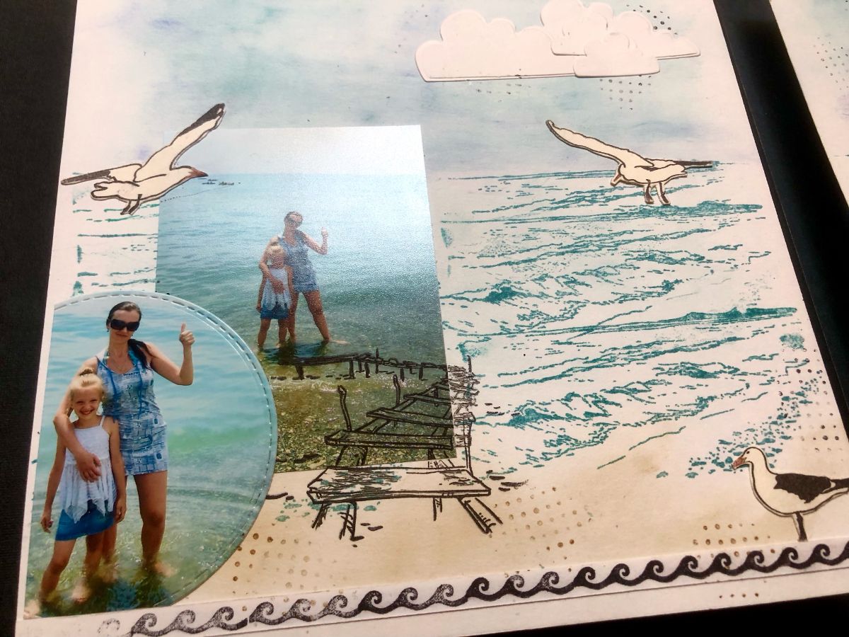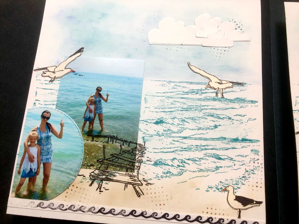 Третий разворот. Штампы "Точки инверсия", набор "Мой капитан", набор "Морской","ЕВ.Прибрежные волны" ,набор "Чайки","Фразы","Длинные мостки"