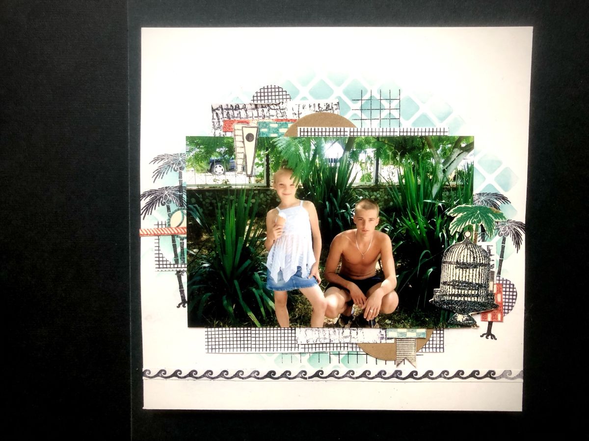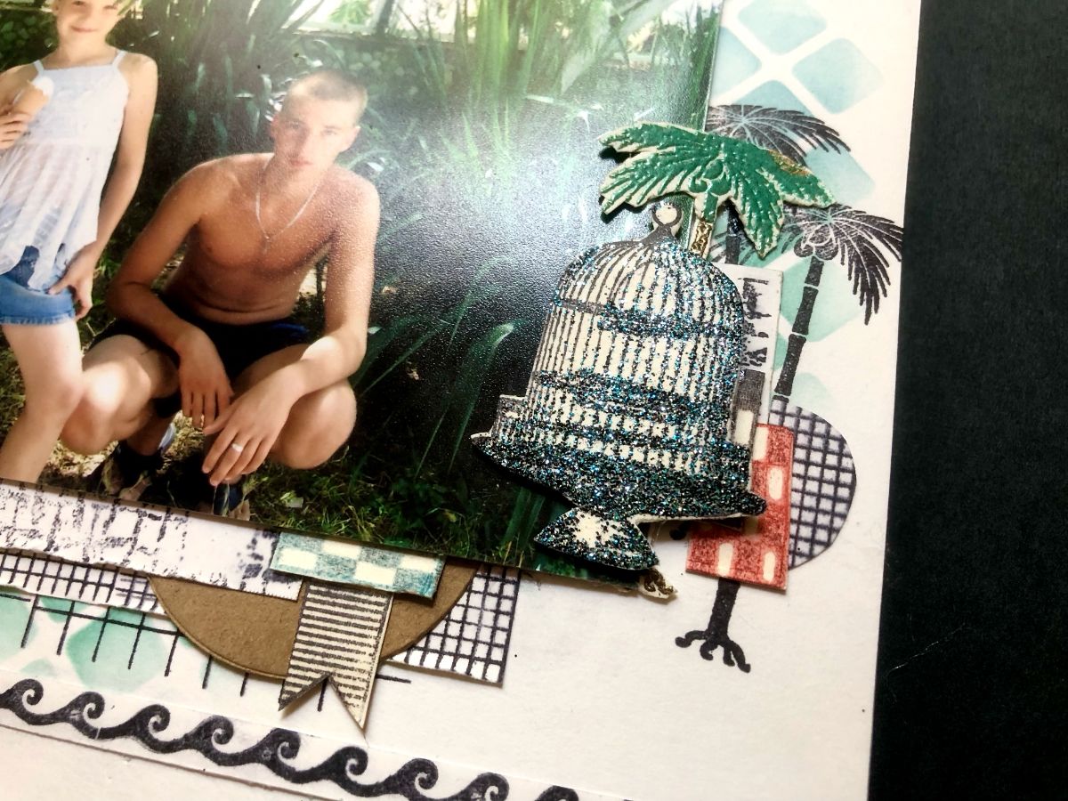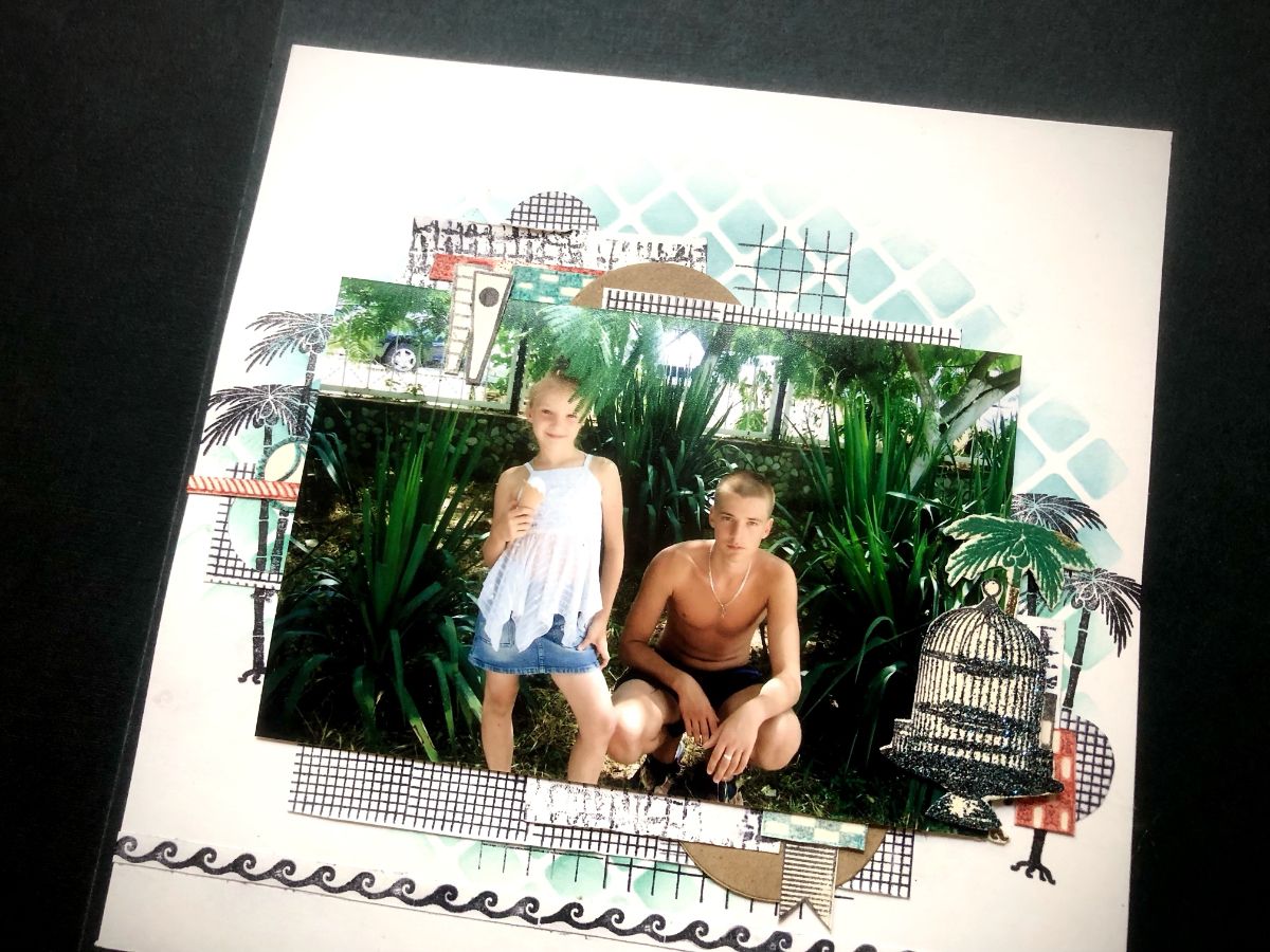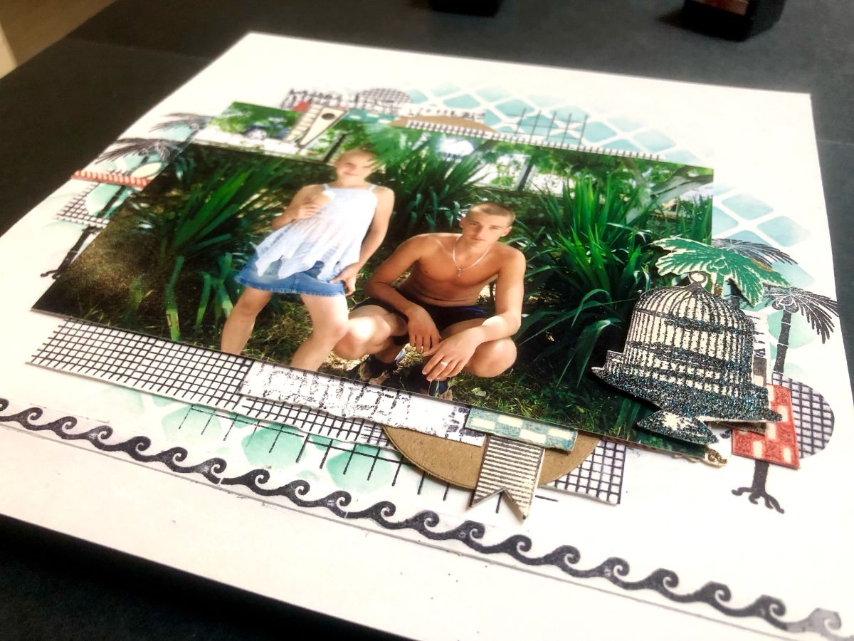Первый разворот создан с помощью ФП штампов : "ЕВ.Парусник мал" , "ЕВ.Прибрежные волны" ,набора "Чайки","Точки инверсия", набора "Мой капитан", набора "Морской", "Штриховка 2",набора "Вечер в парке" , "Хештеги Фото дня", "Пальма",набора "Цветущий сад",набора "Прикосновение" и трафарета "Пергола 19*19 см"