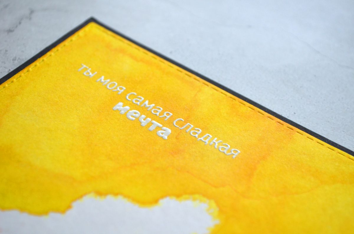 Надписи для открыток я использовала разные, но они взаимозаменяемы. Трогательная надпись Ты моя сладкая мечта очень нежно смотрится эмбоссингом белой пудрой.