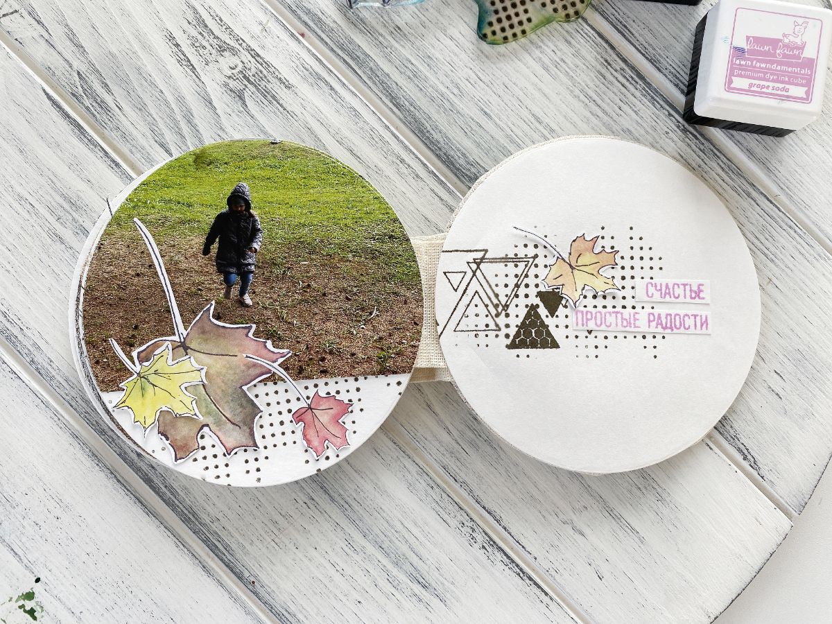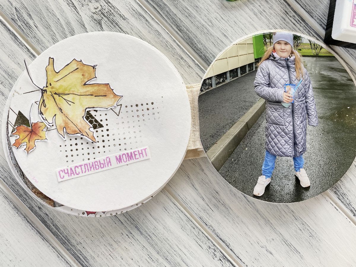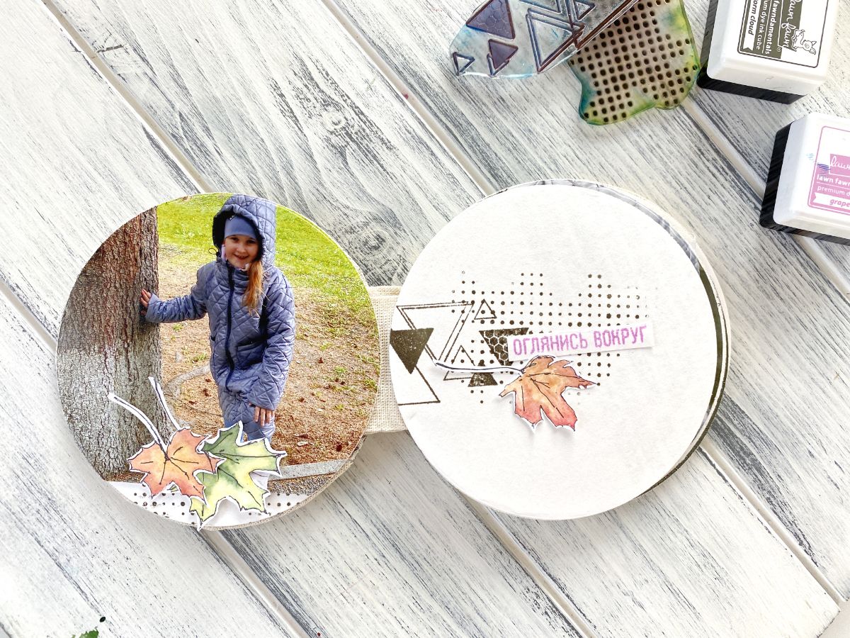 Иногда спонтанные идеи перерождаются в замечательную вещь. Миниальбом про осень с помощью штампов геометрических фигур , здорово вписались треугольники , одновременно придав динамику альбому и особое очаровние.