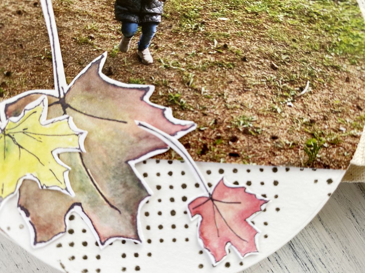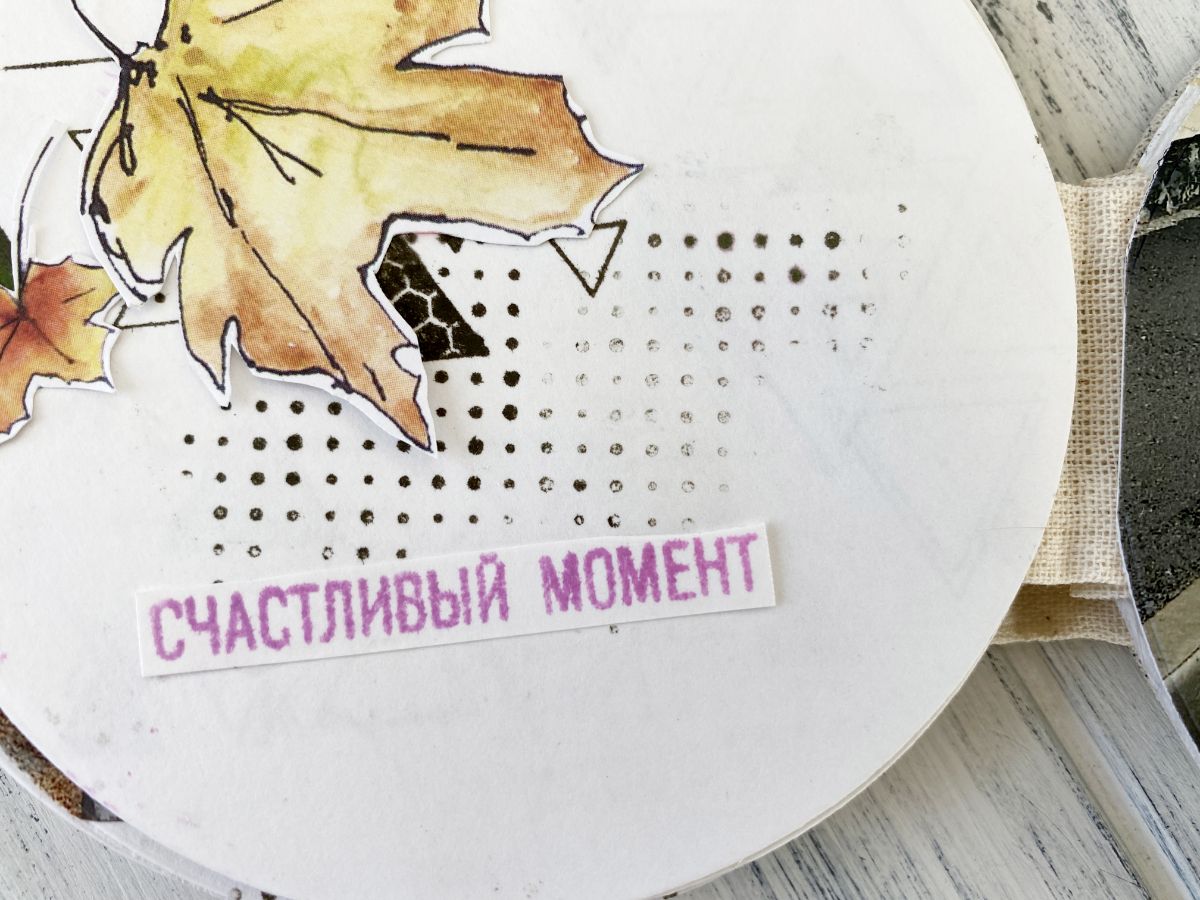 Обрезанные фотографии пришлось доставлять бумагой, чтобы завершить форму, акварель добавлять не стала, решила переход от фото к бумаге плавно скрасить штампом точками