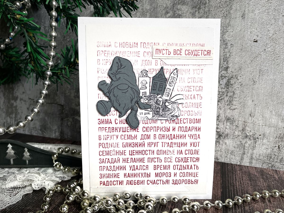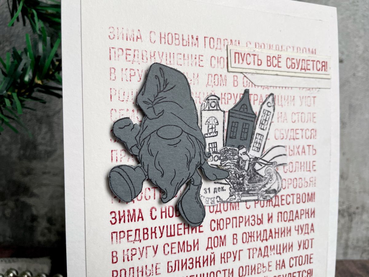 На третьей открытке добавила гномика, который встречает Деда Мороза.