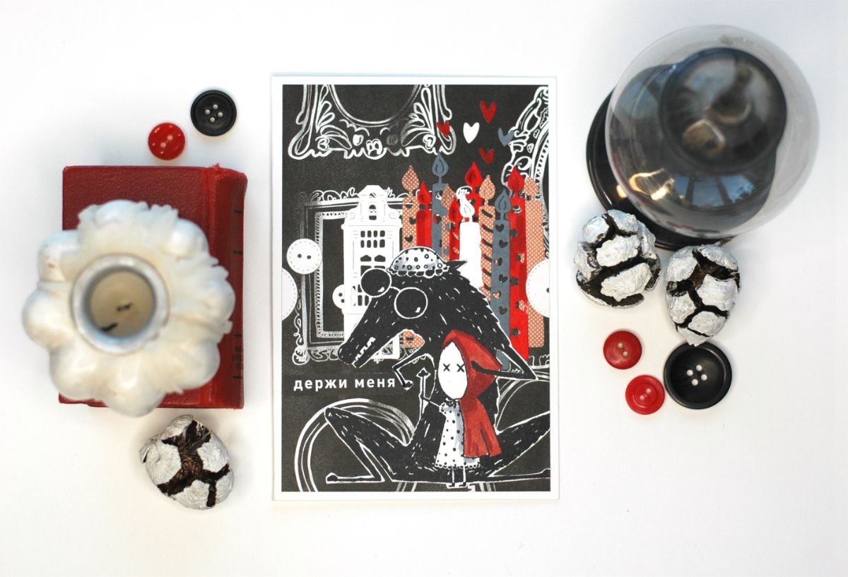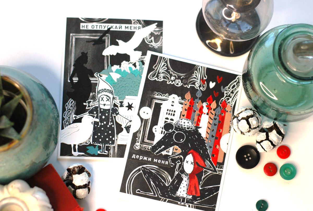 На открытки попали "Весёлая Красная Шапочка" и "Волк бабушка".