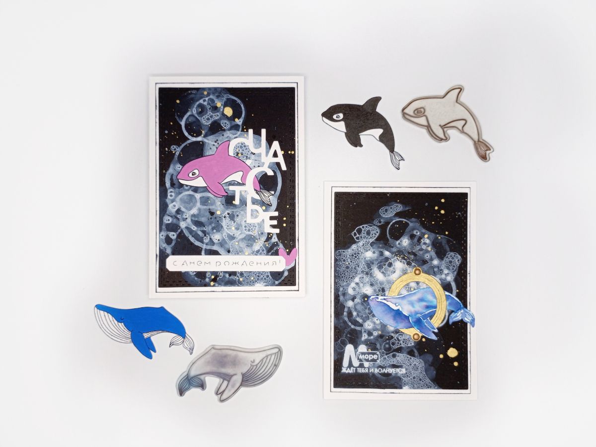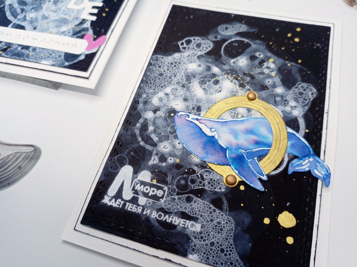 Вырубка, эмбоссинг, набрызг - все смотрится гармонично с этой пеною морскою.