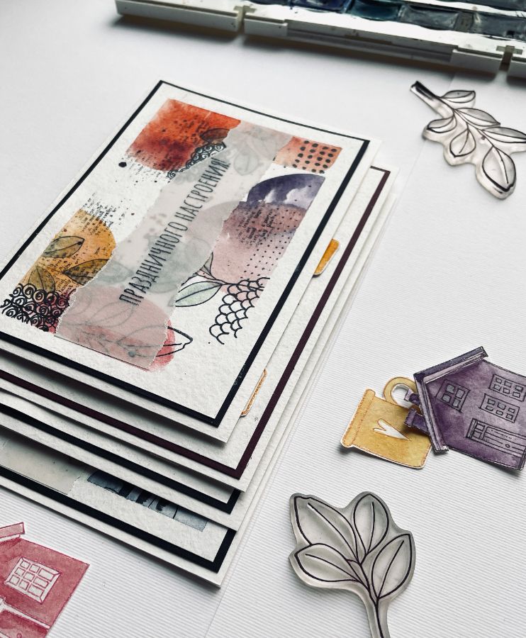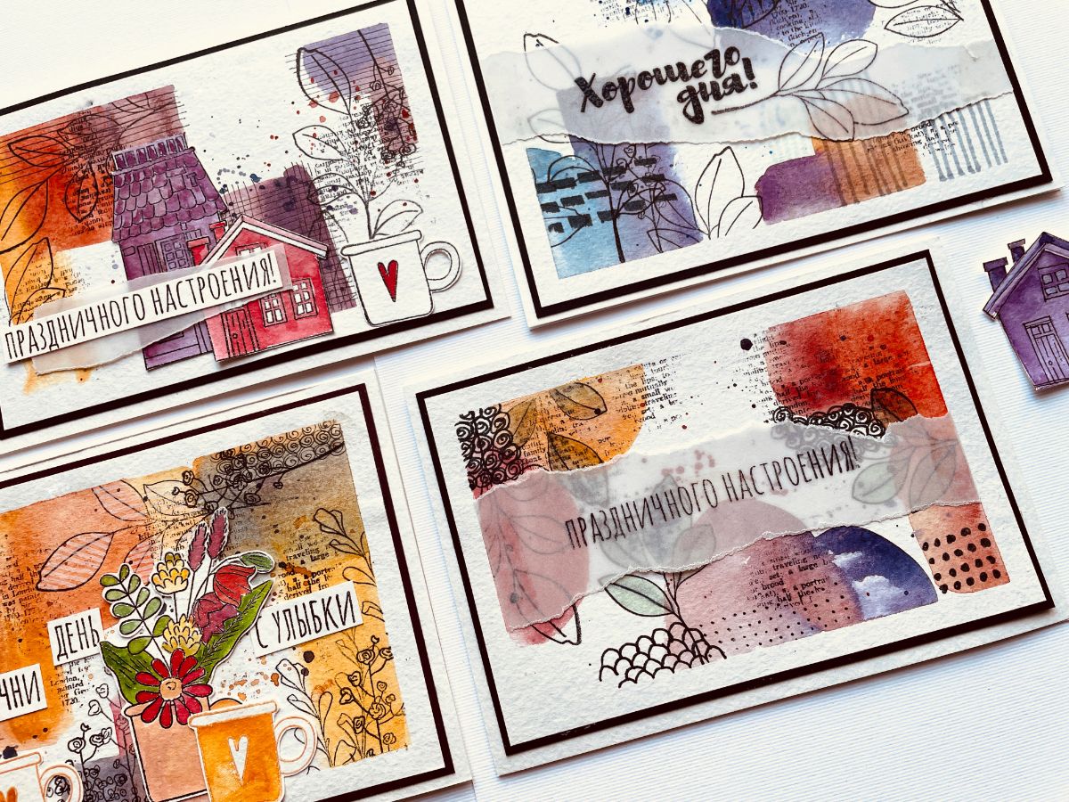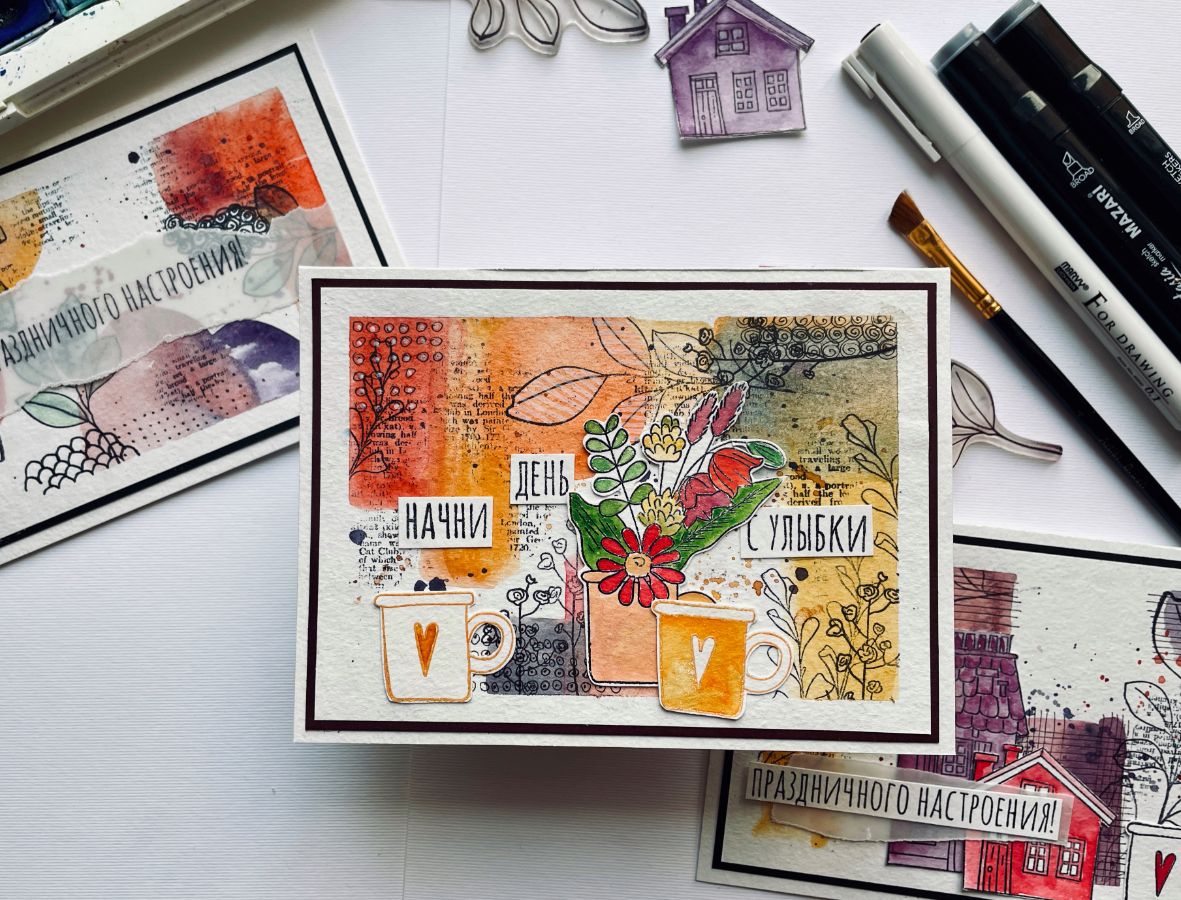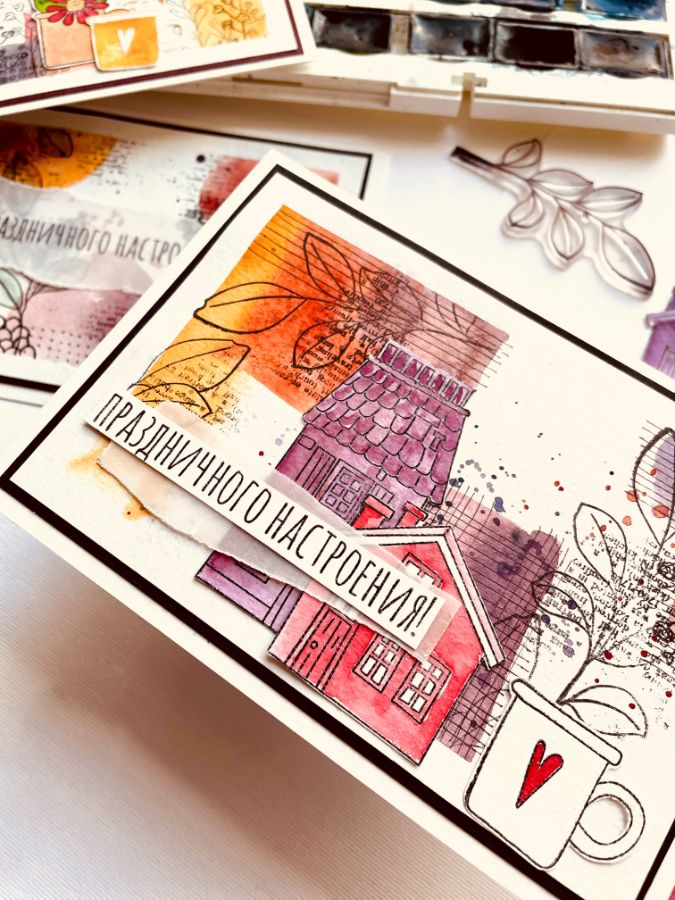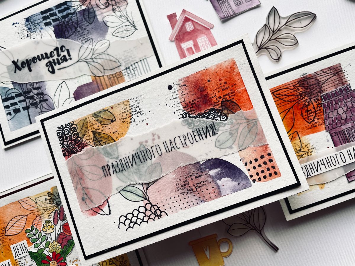 Когда у вас с настроением не очень, или наоборот... очень даже хорошо, то самое время - пошалить)))) Но! У меня уже возраст такой, что шалости должны быть осознанные, т.е. творческие:) И, конечно, я решила заняться своим любимым занятием... с помощью акварели, штампов и нескольких маркеров создать фоны для открыток.