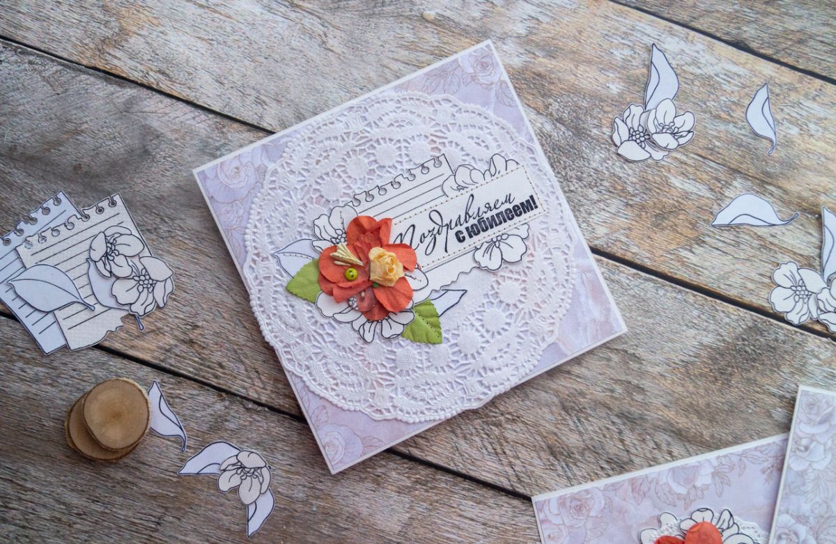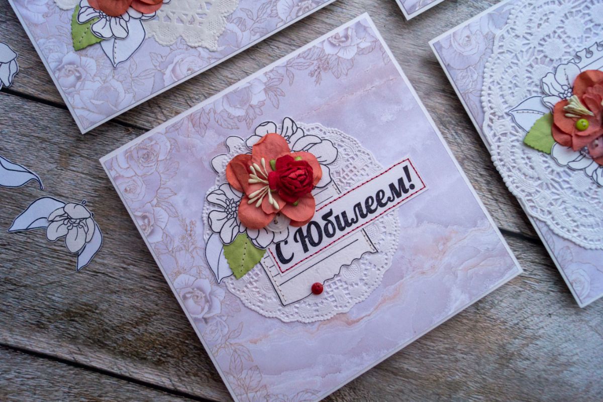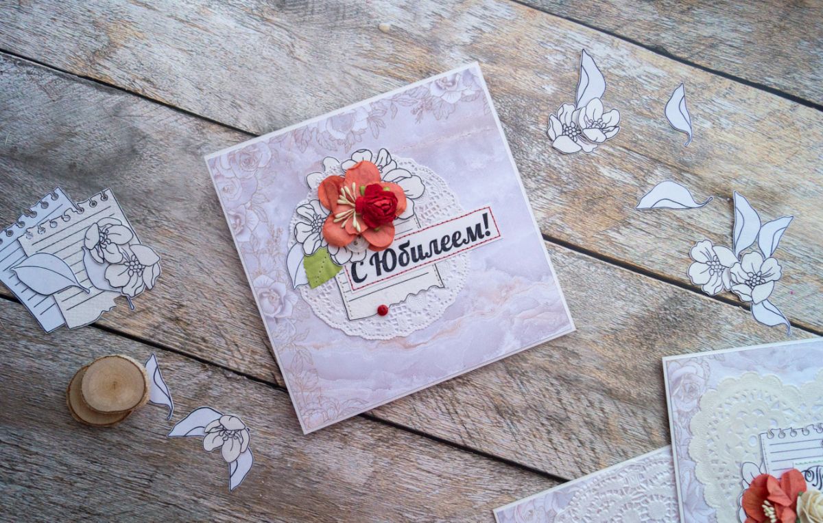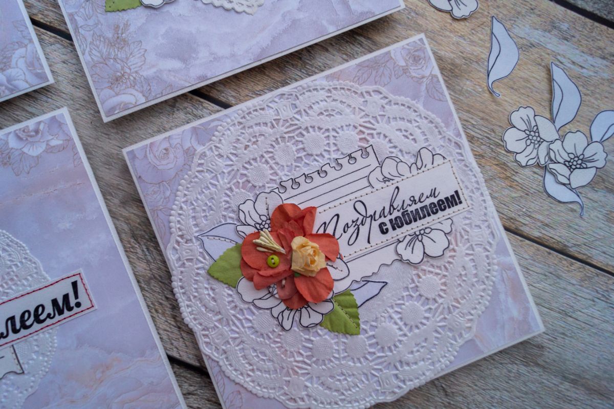 Для создания открыток я взяла эти штампы: Листок в линейку, С юбилеем! 8 см, Поздравляем с юбилеем! ТП, Поздравляю. 3 Бол, Каллиграфия. Поздравляем. 1, Цветы для букета.