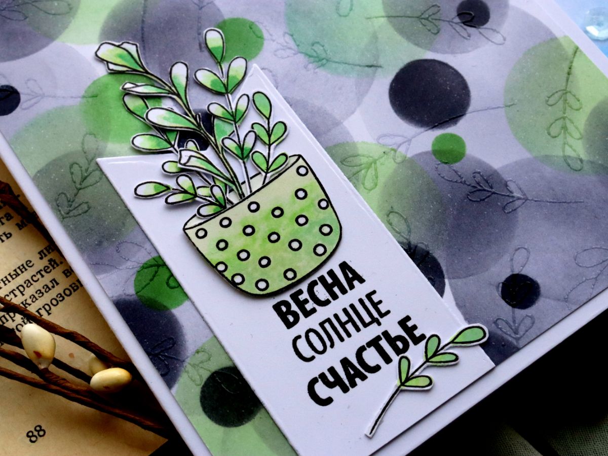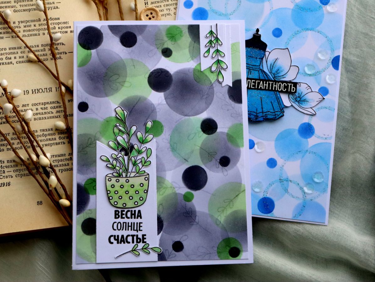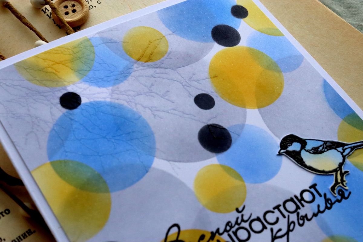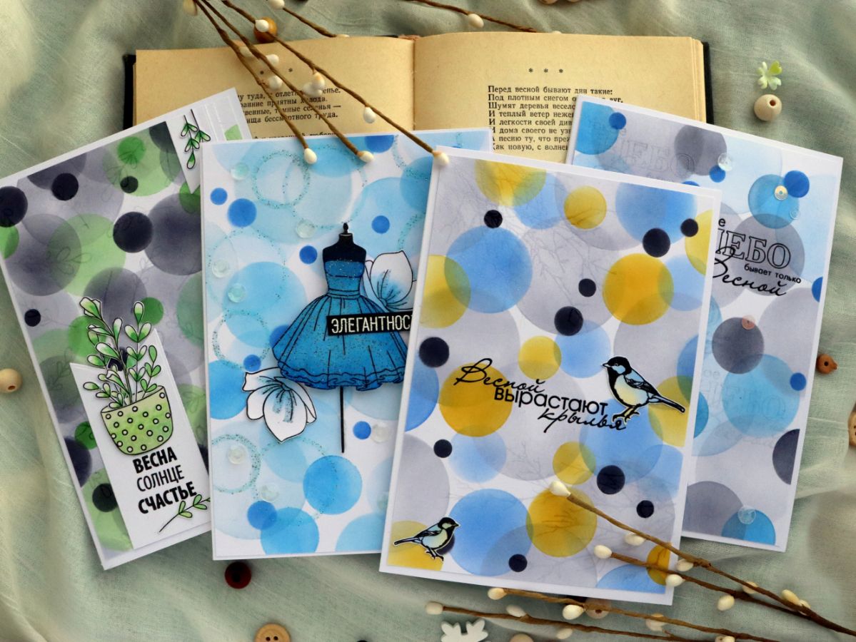 Очень пригодился трафарет "Боке" , а весенние штампы на таком фоне настоящие главные герои.