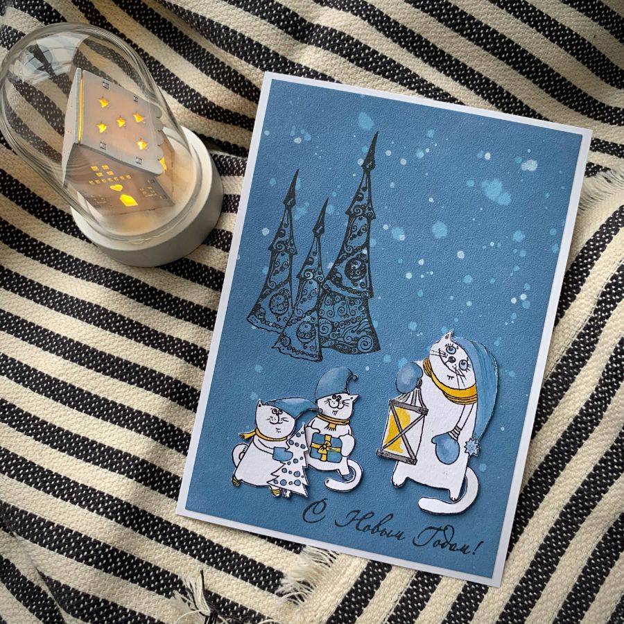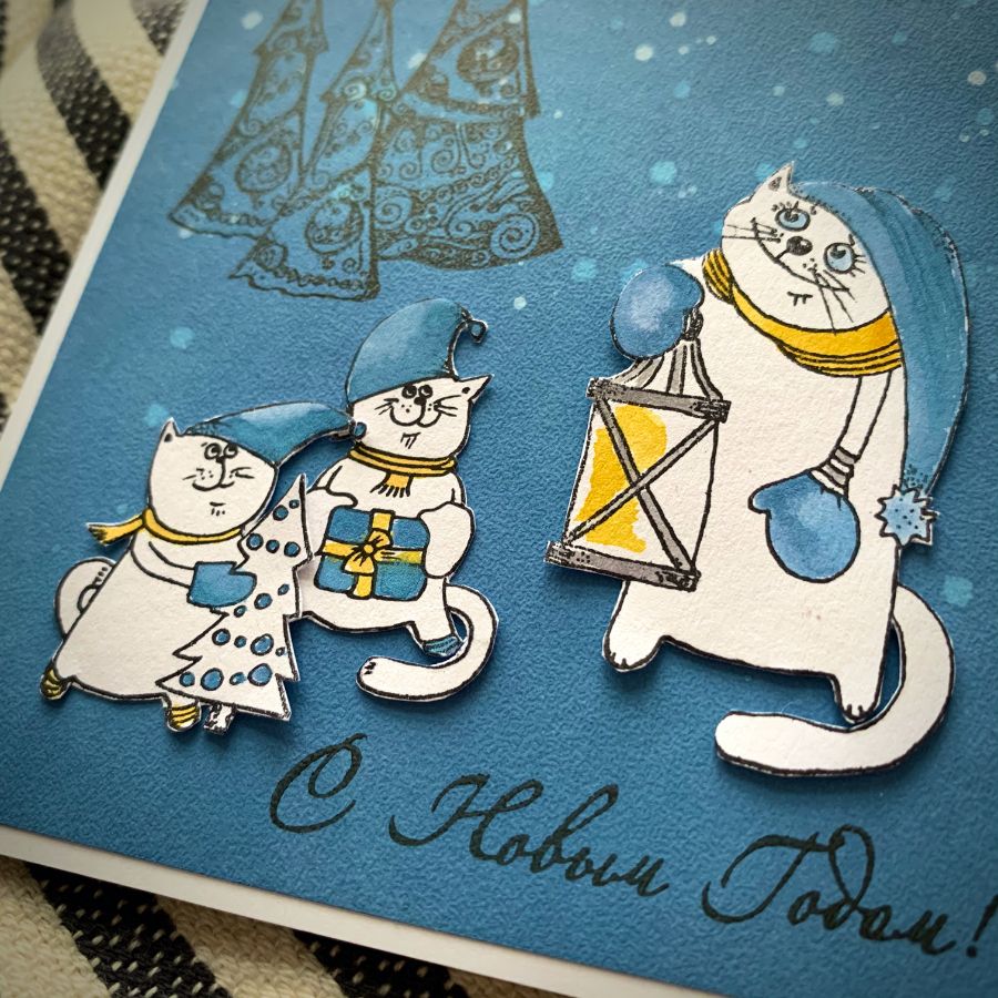 Ну, и куда же я теперь без котовасии?)) Поскольку в этом году в моей жизни случилась кошка, то в моих новогодних открытках появились именно кошки, а совсем не мышки, что было бы, конечно, логичнее, учитывая талисман будущего года, но у меня своя логика))