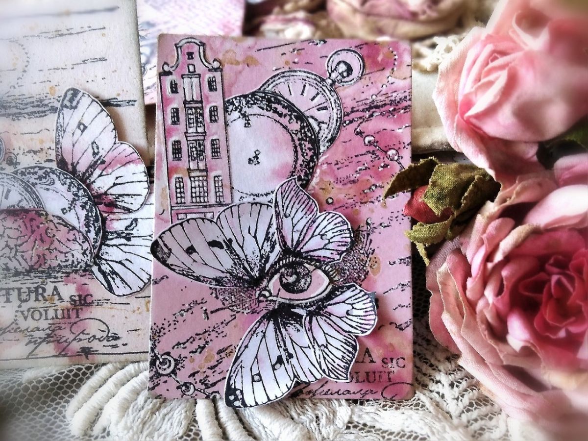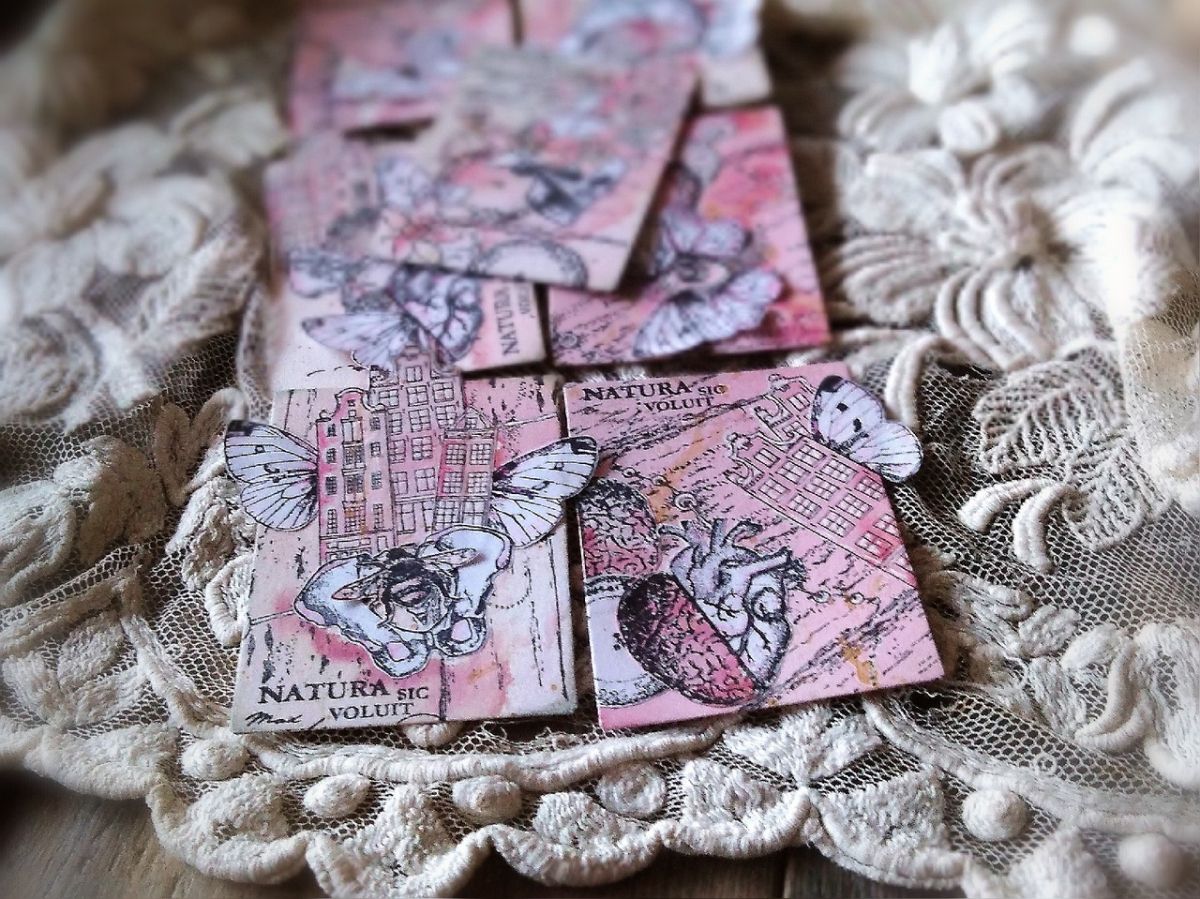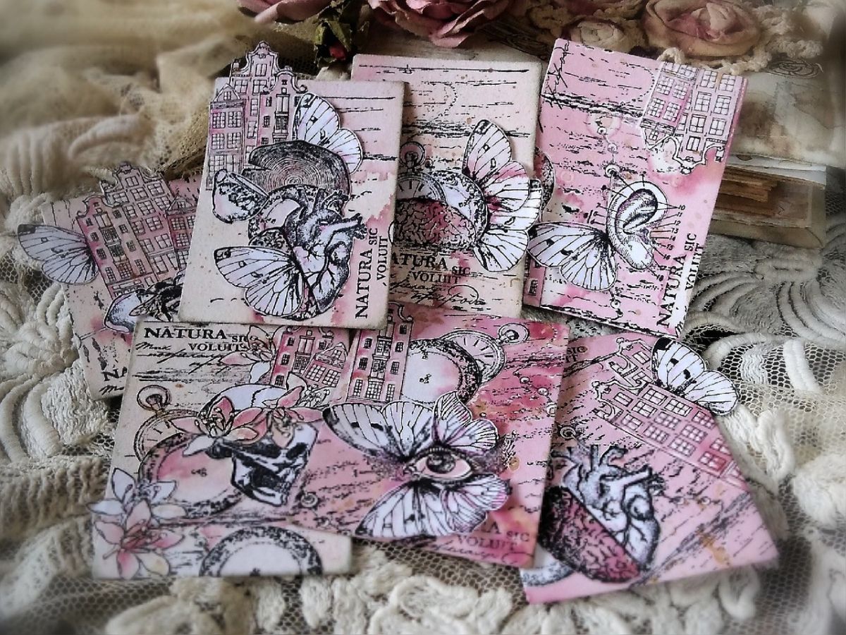 Для своих экспериментов выбрала АТС. Раньше не любила их делать, зато теперь очень ценю маленькое пространство карточек и получаю удовольствие от работы над каждой серией.