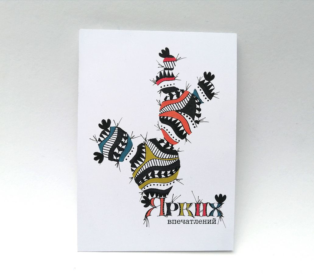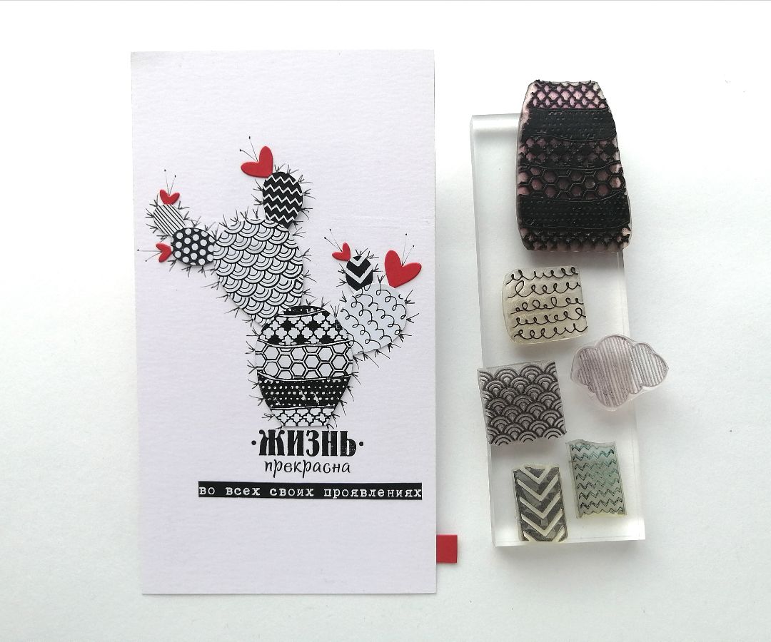 Первые три работы я сделала при помощи набора "Этнографика", надпись - "Ярких впечатлений". А для этой пошли в ход совершенно не предназначенные для дудлинга штампы. Я специально сделала фото штампов, которыми дудлила этот кактус, узнаете? :) Это юбочка из набора "Девочки" от Юлианы Ефремовой, набор "Скотчи", полосатая тучка из "Разноцветных облаков" и парочка фоновых "Дюймов": "Морская рябь" и "Серпантин". Надпись из набора "Живи сегодня".