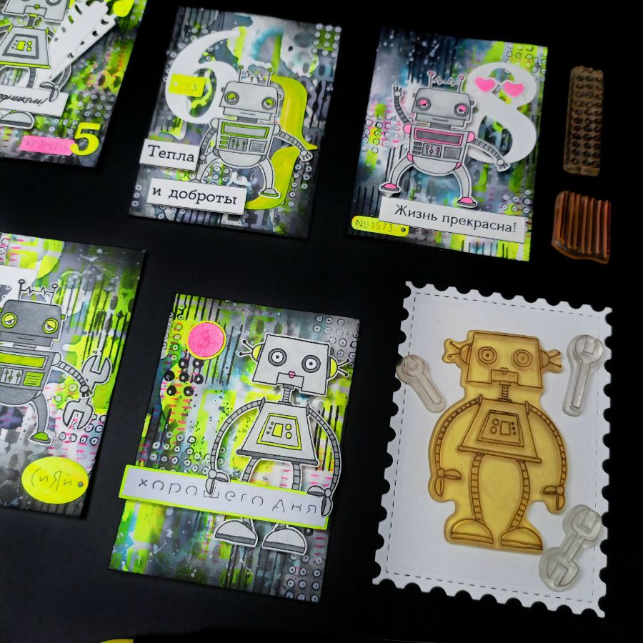 Я давно не делала АТС, да и редко у кого встречаю такой формат сейчас, поэтому особенно приятно было разместить истории роботов на карточках.