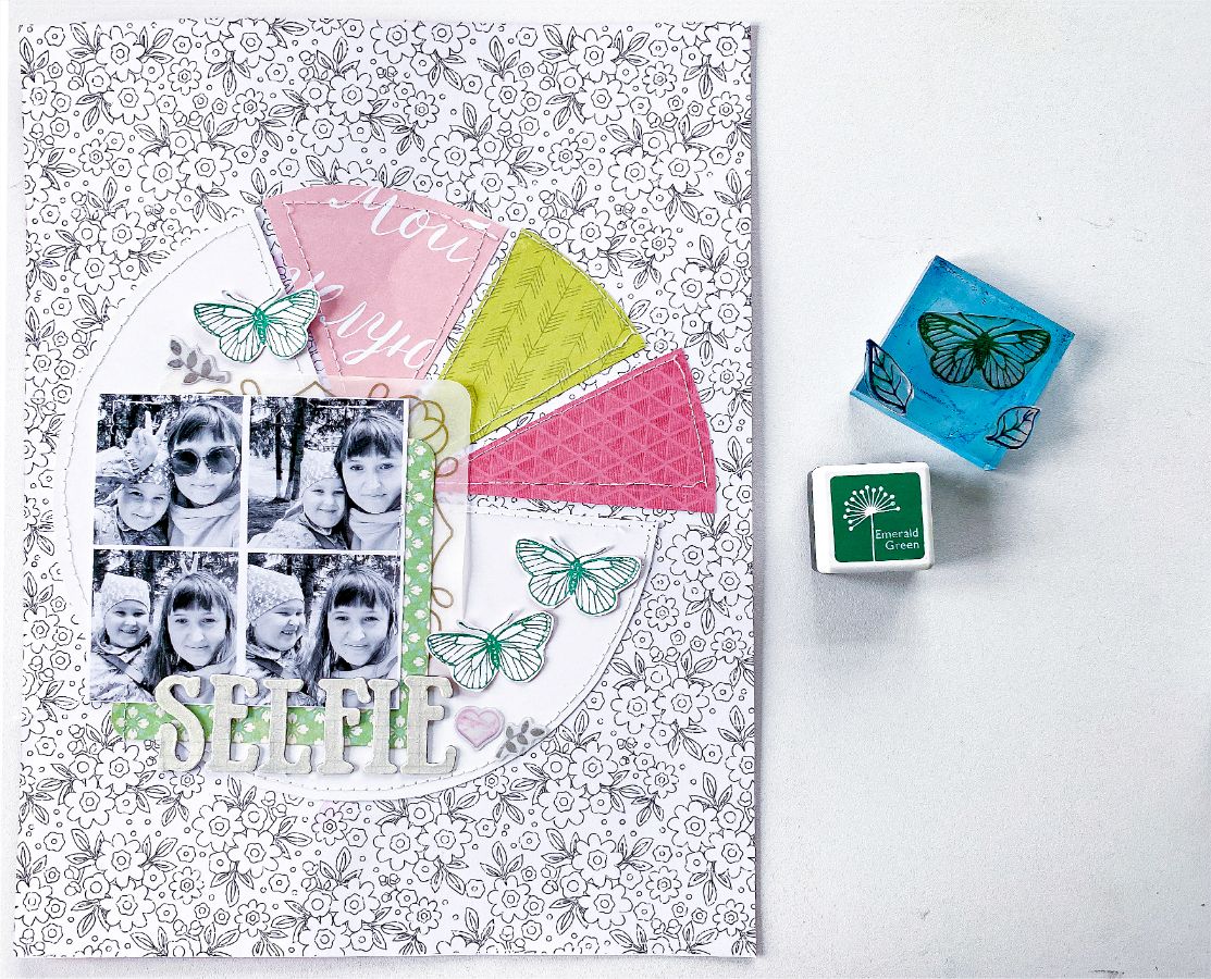 Наштамповала и вырезала оттиски, затем разложила их в хаотичном порядке по страничке
