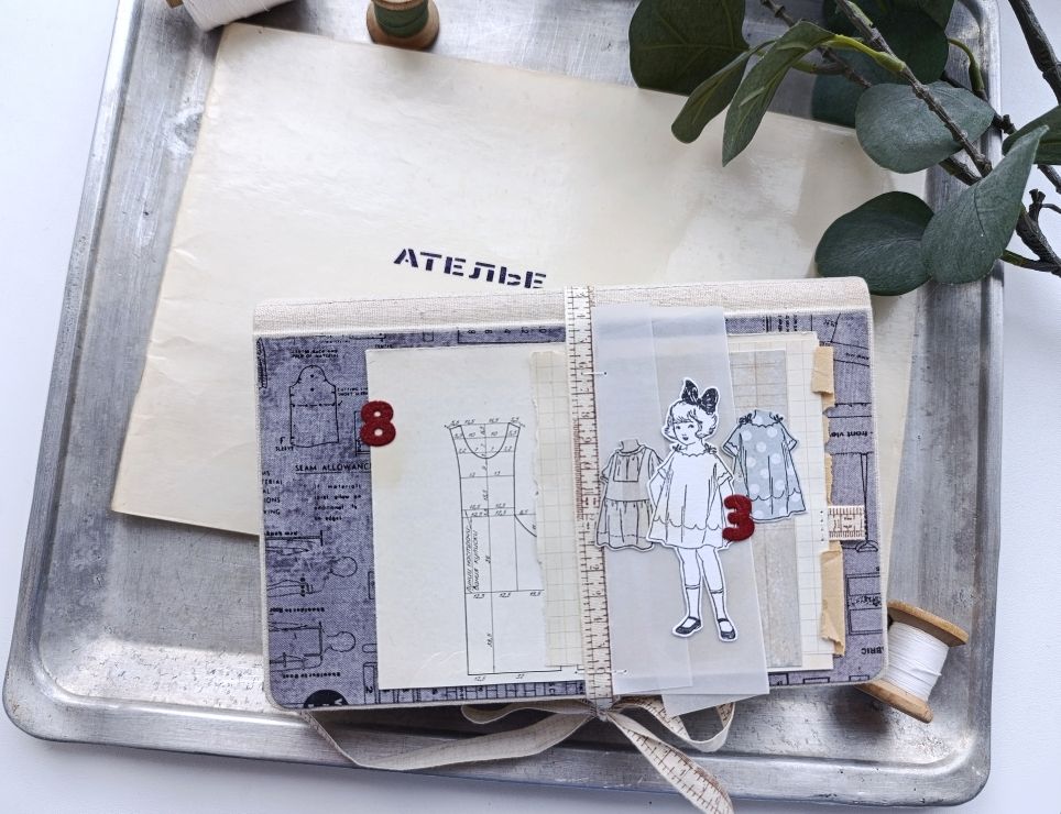 Когда-то я не плохо шила, эх, давно это было, с тех пор обожаю все, что связано с этой темой. И вот, с отсылкой на шитьё и моду, у меня сложился альбомо-блокнот, в нем есть оформленные странички с подложками для фото, и странички с кармашками, в них располагаются тетрадки для записей.