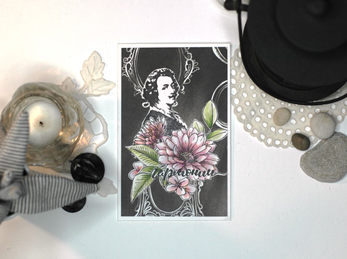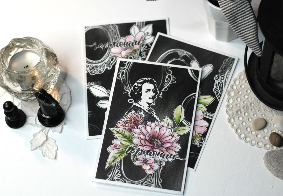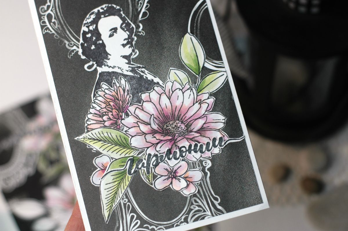 Открытки с цветами - всегда беспроигрышный вариант. Особенно, если цветы вручную раскрашены маркерами.
