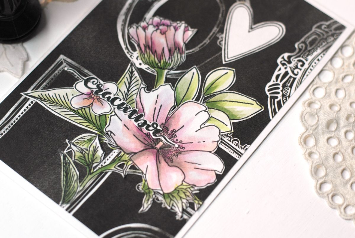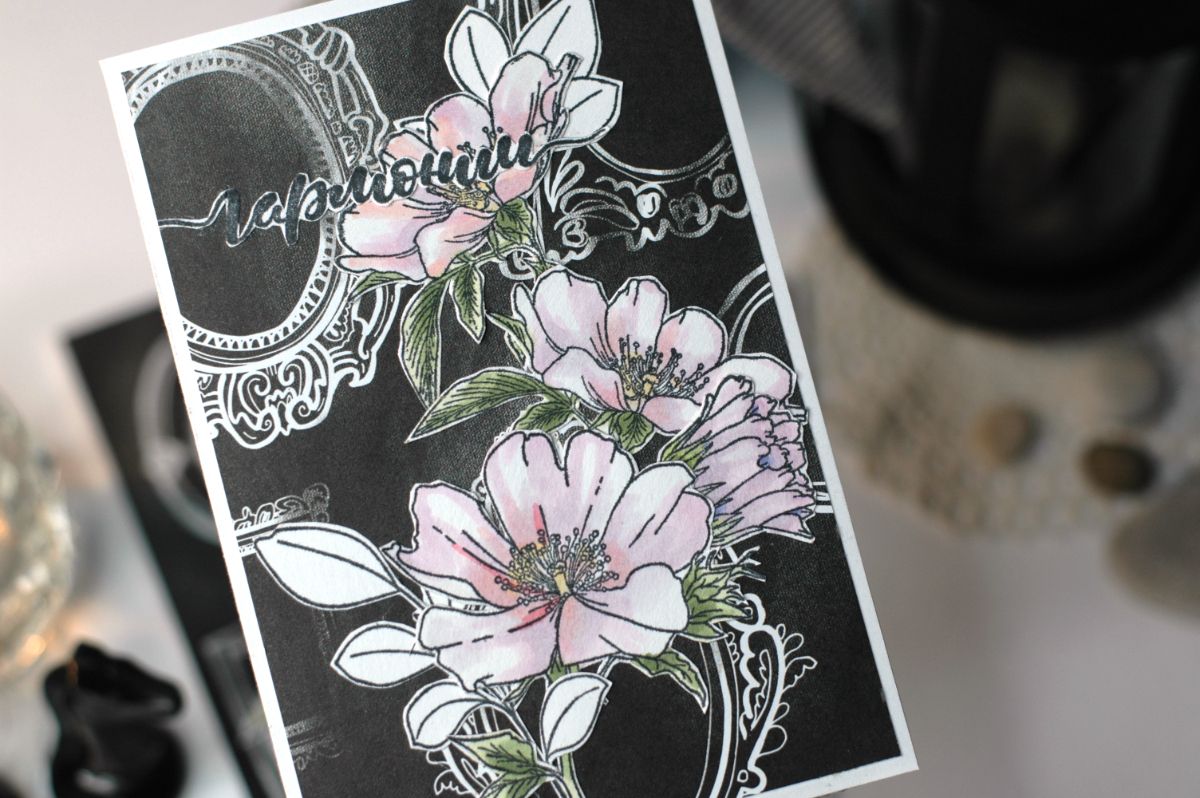 Чёрный фон с рамами добавляет простому сюжету благородства и подчёркивает красоту цветов.