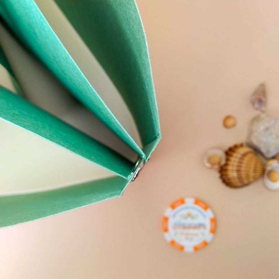Лайфхак: Для надежности и декоративности прикрепляю блок альбома к обложке брадсами.. Потом поверх хвостиком брадсов наклеиваю полоску бумаги в тон основе страниц.