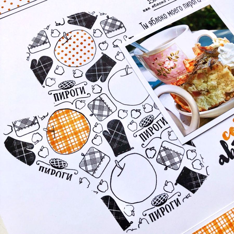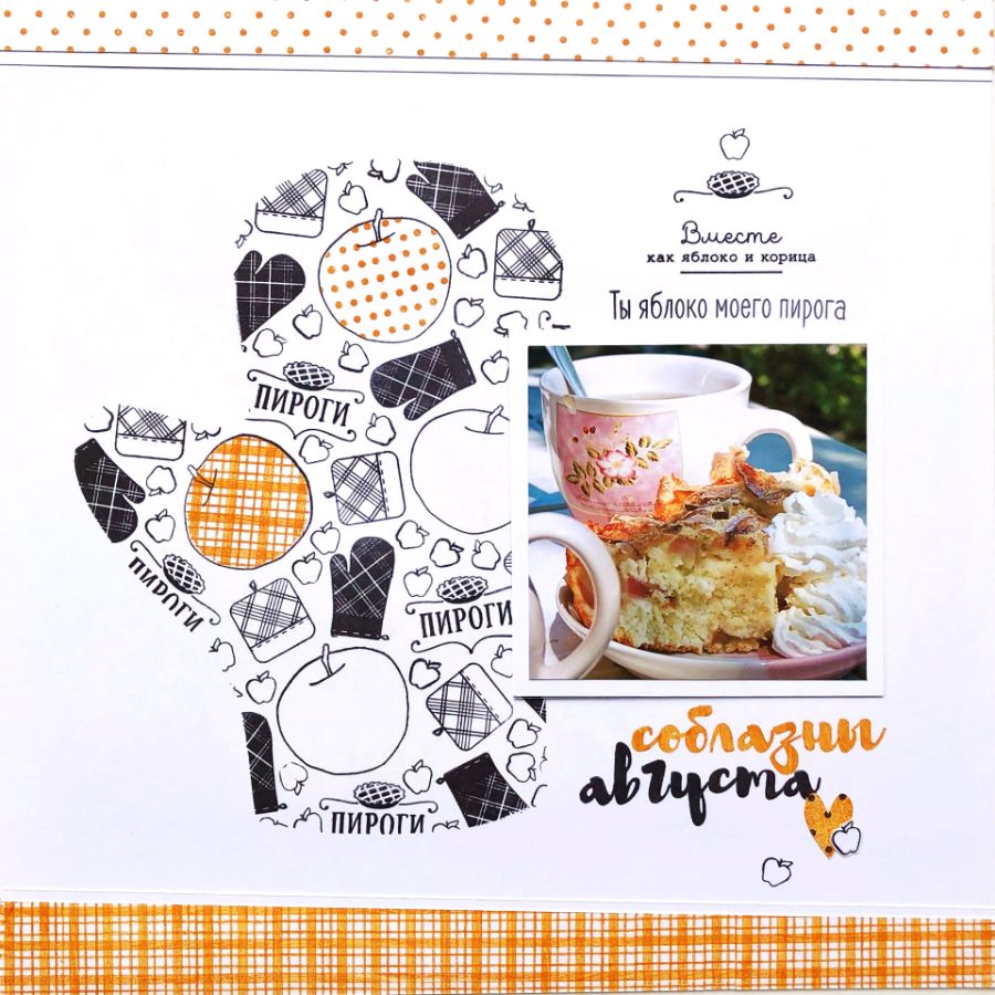 Поскольку мы иногда не просто готовим, но еще и фотографируем наши кулинарные шедевры, я решила оформить одно такое фото в страничку. В работе использованы штампы: ЯБЛОКО С ЛИСТИКОМ, ПРИХВАТОЧКИ, ПИРОГИ, ЯБЛОКО МОЕГО ПИРОГА, ВМЕСТЕ КАК ЯБЛОКО И КОРИЦА, ЯБЛОКО И ГРУША, СЕРДЕЧКО, АЛФАВИТ ЛЕТТЕРИНГ МАЛЫЙ. СТРОЧНЫЙ, ФОН. МЕЛКИЙ ГОРОХ, ГОРИЗОНТАЛЬНЫЕ ПОЛОСКИ.
