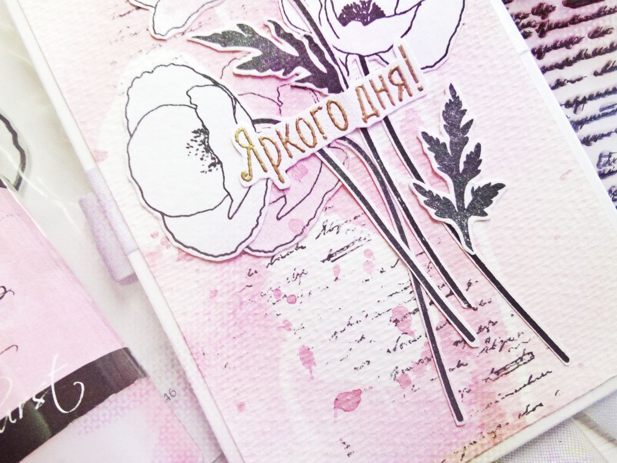 Идеи всегда приходят внезапно. Особенно те, что лежат на поверхности. И где находится кнопка, включающая лампочку с надписью «эврика», не известно. Мои скрапово-штамповые черновики отправлялись либо в мусор, либо, если уж очень красивые, в пухлую папку на верхней полке, чтобы потом все равно перейти в разряд макулатуры. Но ко мне пришла идея использовать красивые «тени», которые остаются иногда на черновике после окраски оттисков спреем. И сегодня моя серия работ именно с такими «тенями», которые придают фону особый шарм.