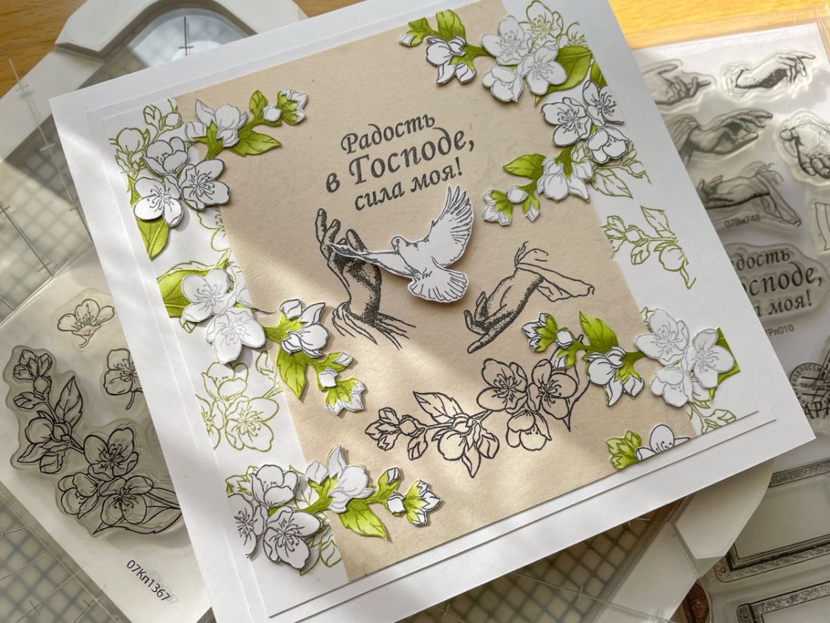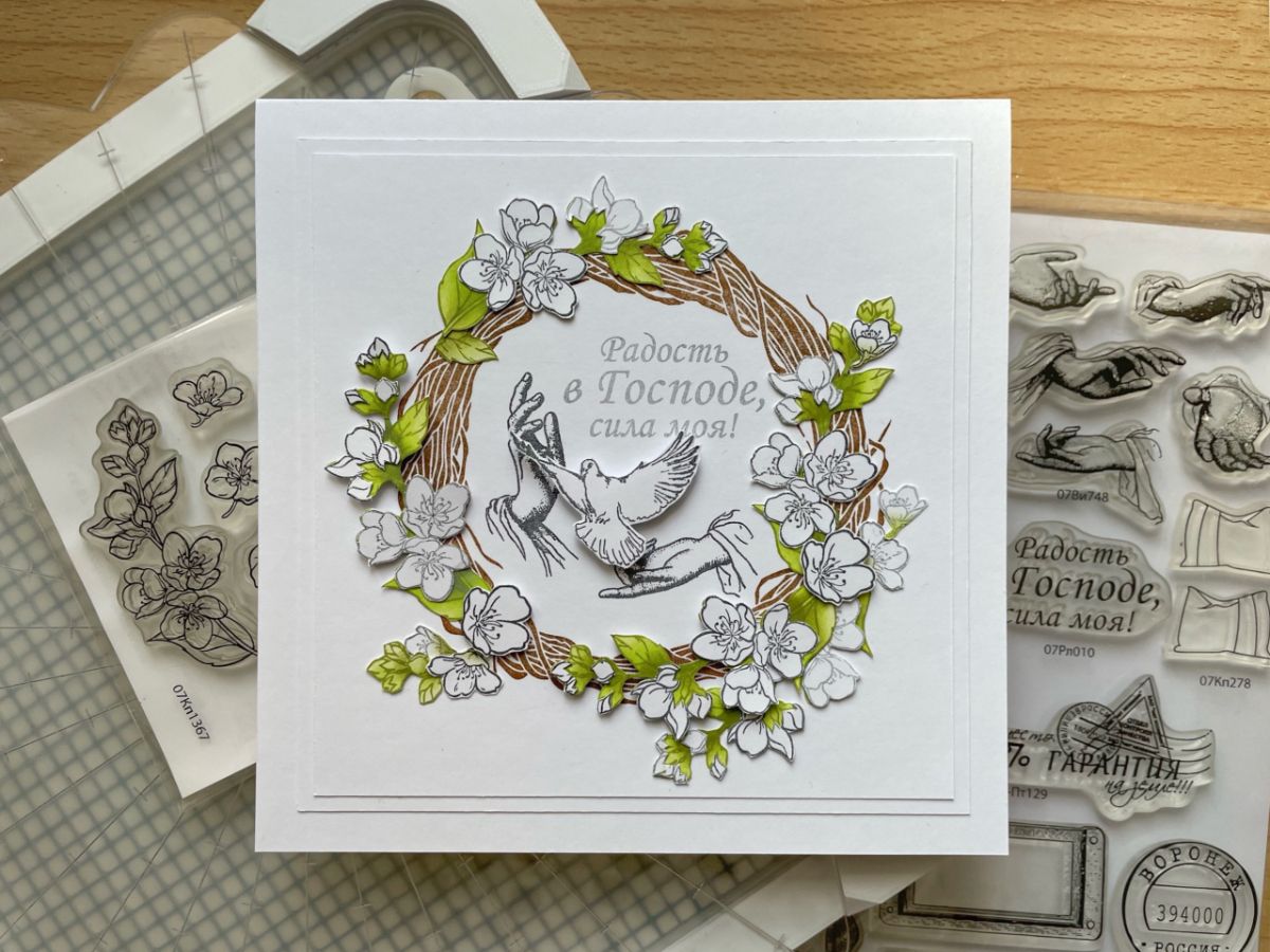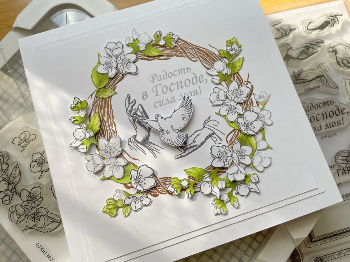 В работе штампы: Жасмин, Венок обратный, Голуби в полете, Жесты, Радость в Господе.