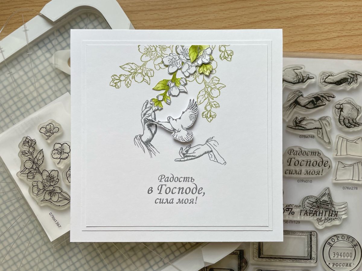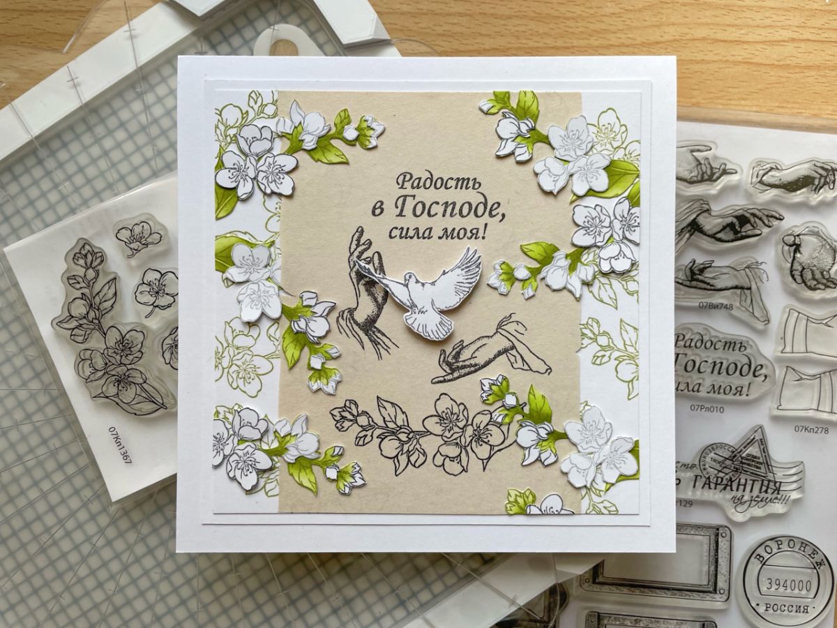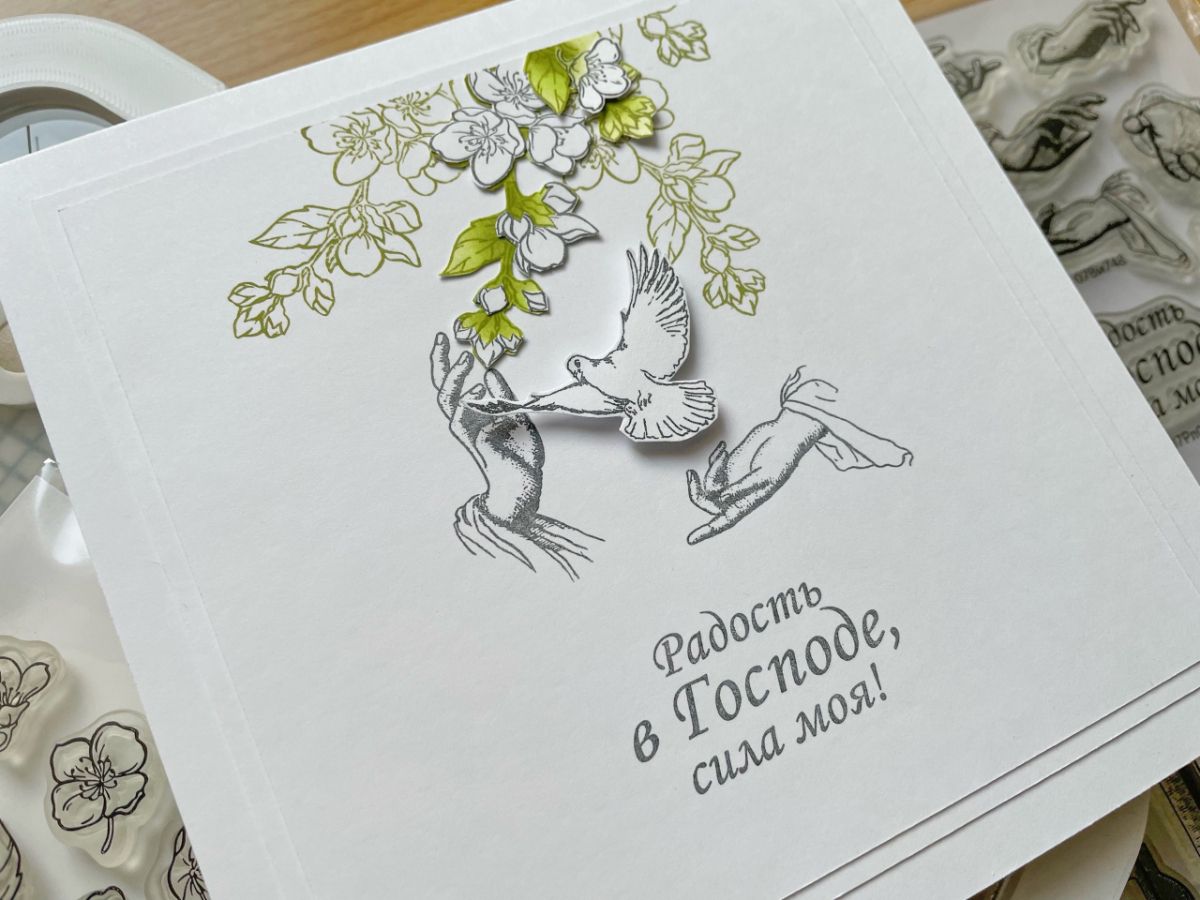 В работе штампы: Жасмин, Венок обратный, Голуби в полете, Жесты, Радость в Господе.