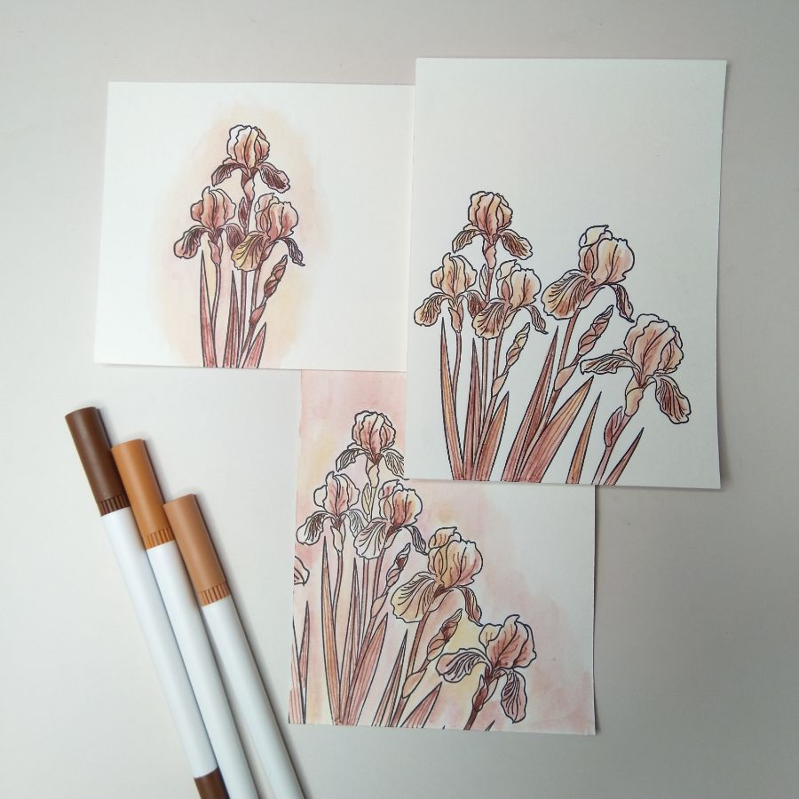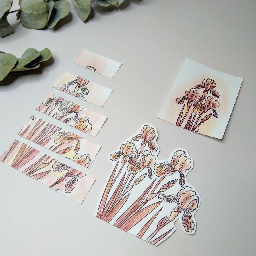 Раскрасила и разрезала. Да, одни ирисы разрезаны, вторые вырезаны по контуру, а кто-то остался на своей основе.Сейчас все объясню.