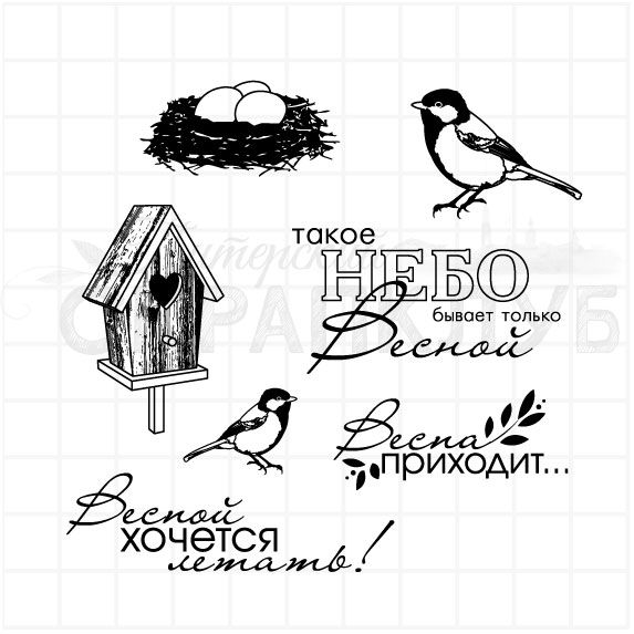 Набор прозрачных фотополимерных штампов для скрапбукинга. В наборе 7 штук.