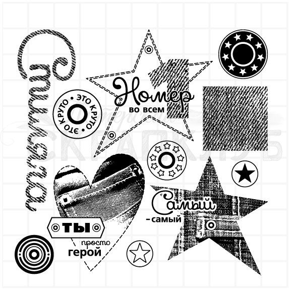Для использования необходим акриловый блок, рекомендуемый размер 7.5х5см. Набор подходит для оформления мужских страничек, альбомов и открыток молодых и стильных мужчин.