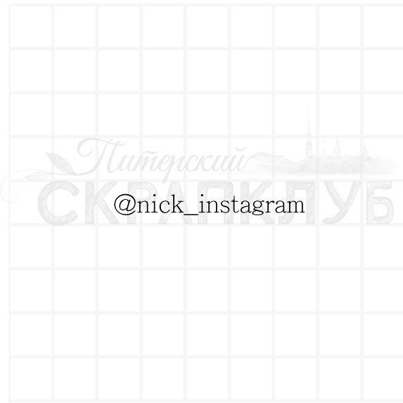 Пример готового штампа на картинке. Штамп изготавливается в одну строчку с этим шрифтом и такой же высоты букв (@=5 мм) без включения дополнительной информации, кроме вашего ника.