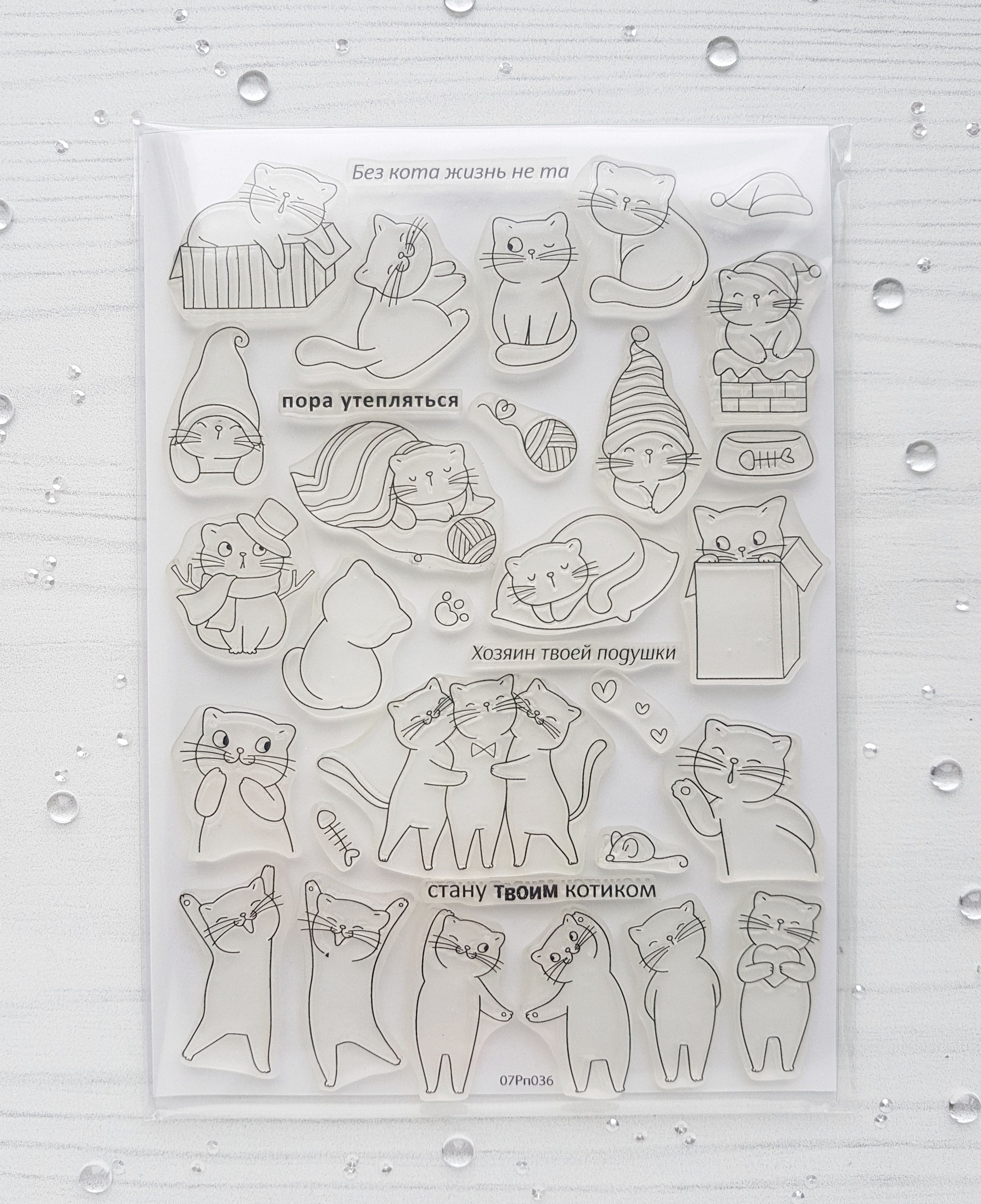 Набор прозрачных полимерных штампов для скрапбукинга в папке-пленке 15х20 см. Включает 32 штампа.