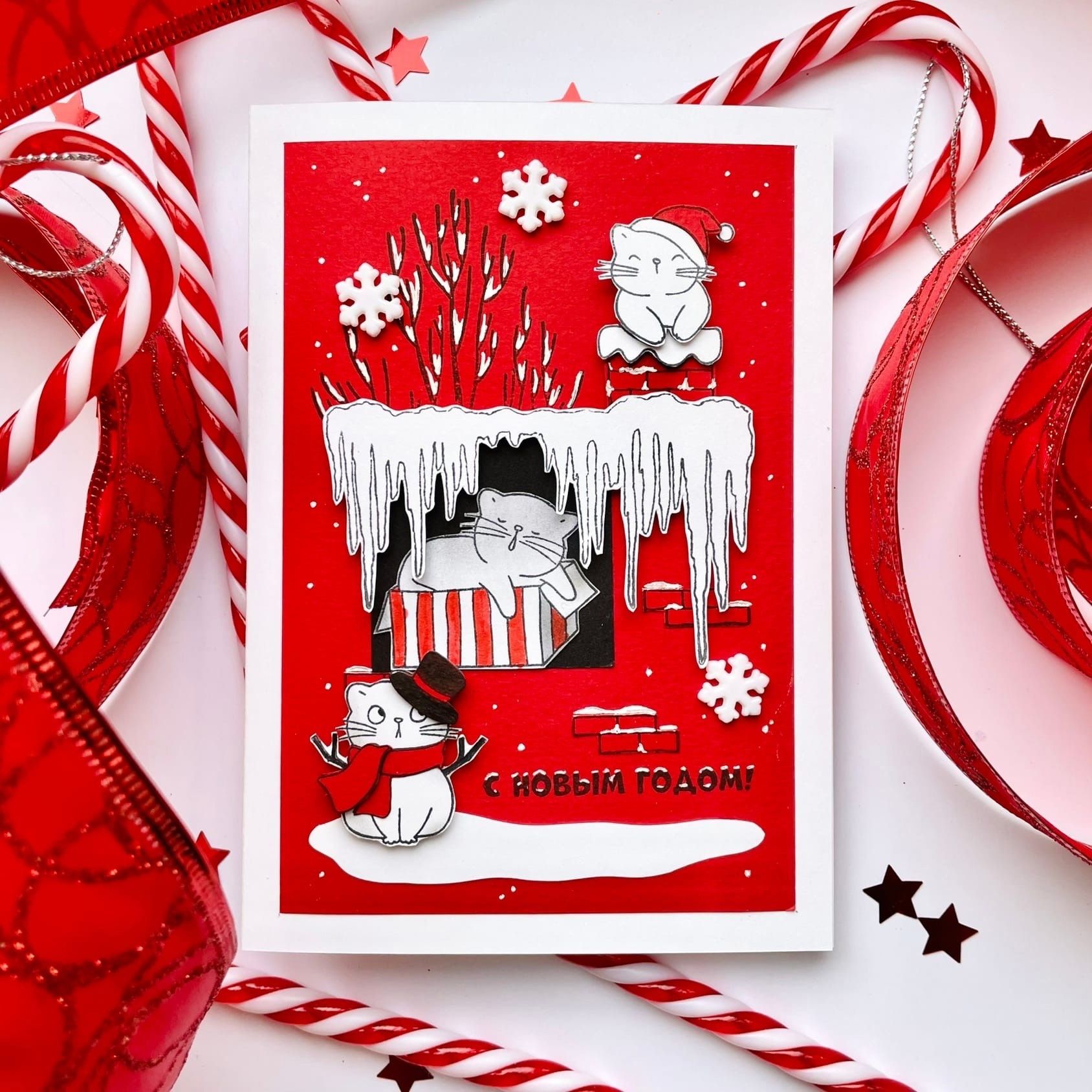 Котики - безпроигрышный вариант для любой открытки. Просто так, про любовь, новогодняя - им везде найдется место. Они милы, веселы и любой породы - хоть в полосочку, хоть в пятнышки. Какими захотите, такими и будут. Да, и котиков много не бывает)