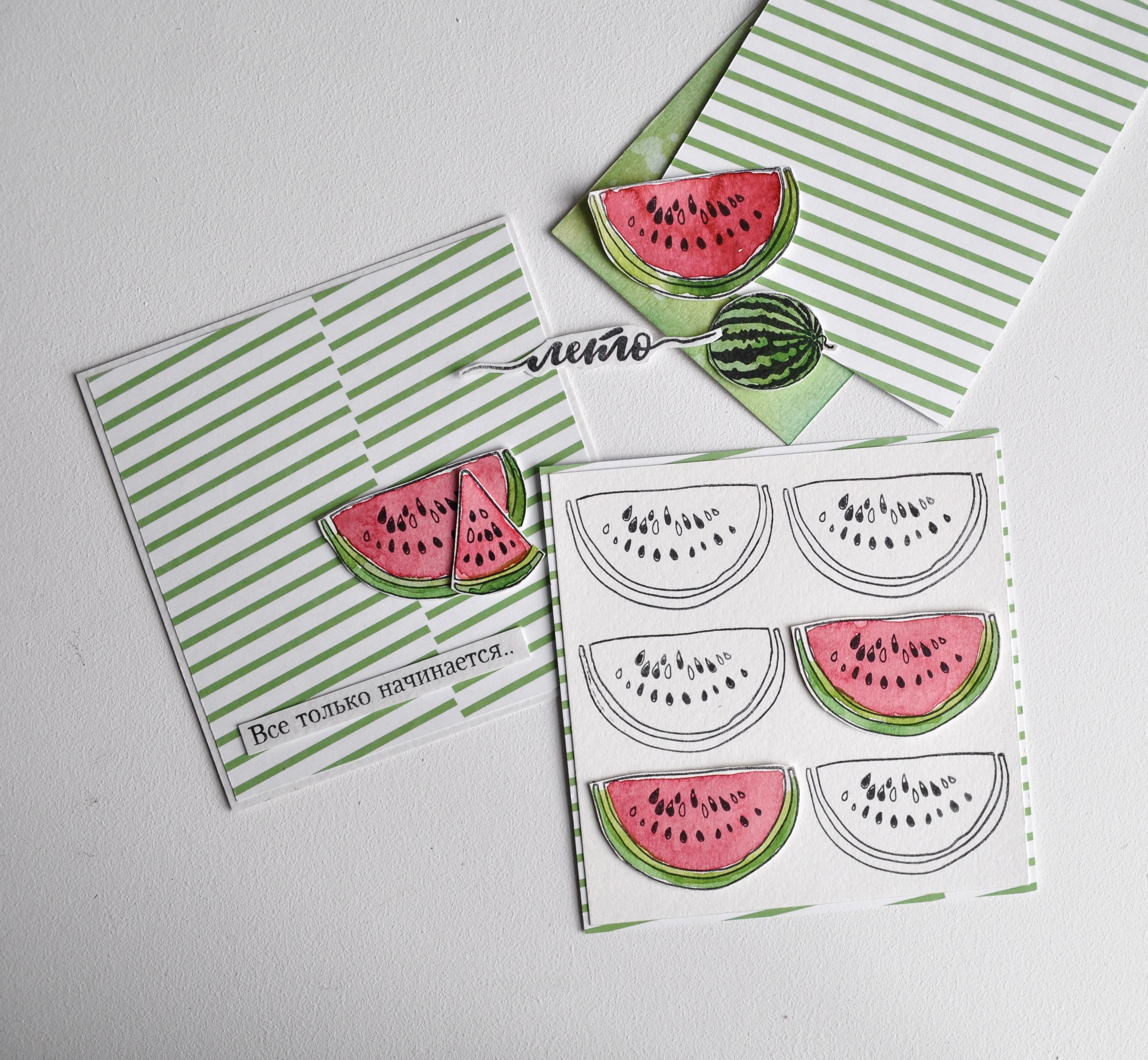 Арбузы подойдут для раскрашивания в разных техниках, создайте свой собственный сочный арбуз на открытке.