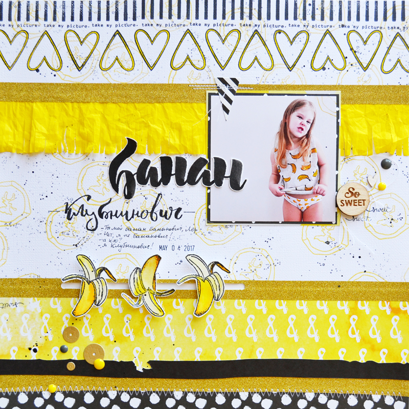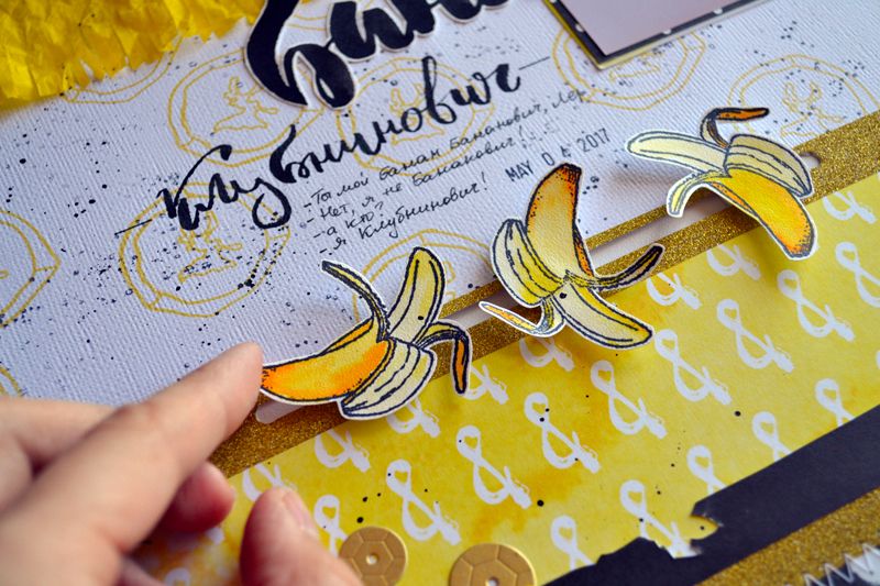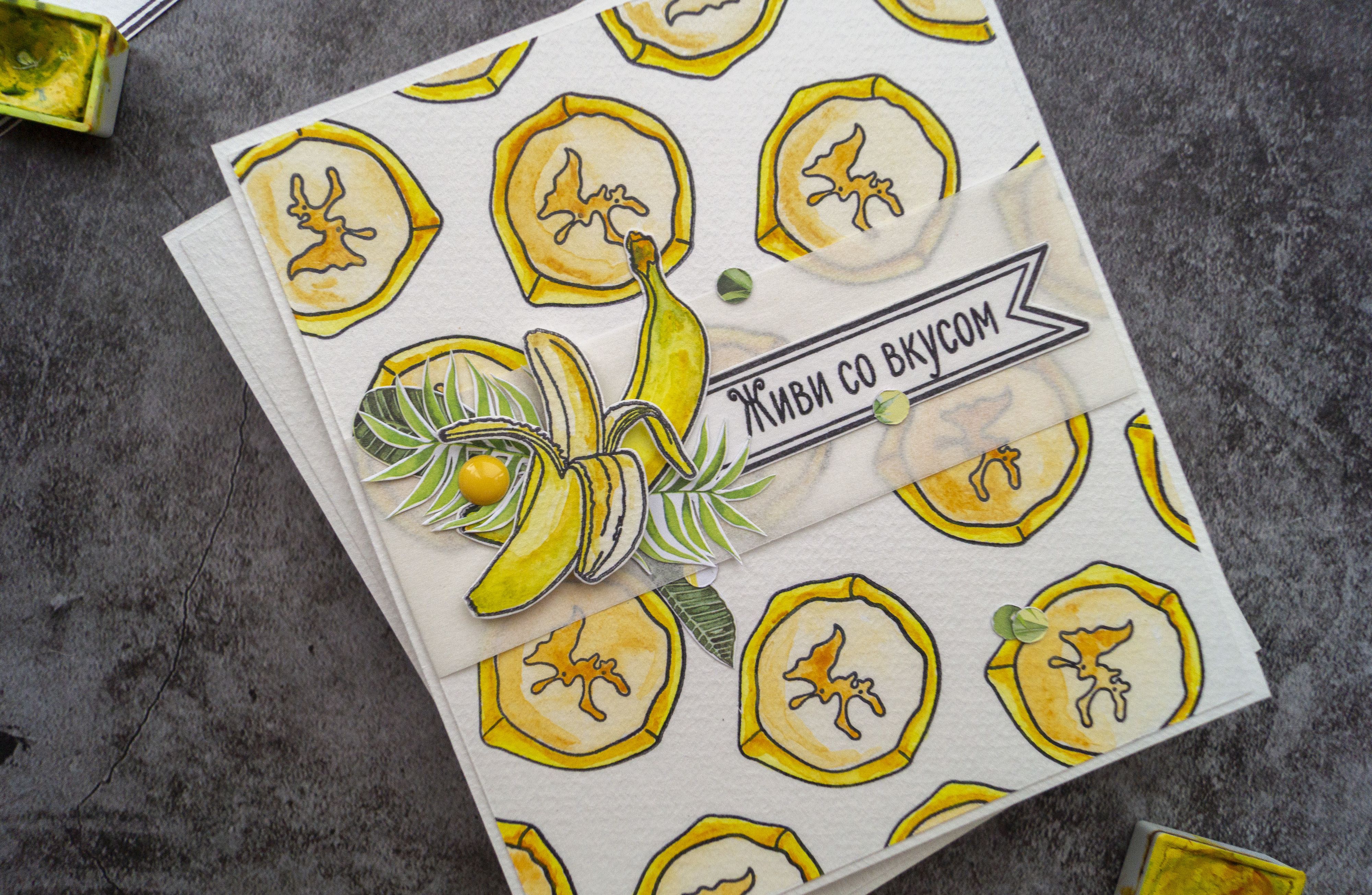 Штамп с бананами для раскрашивания открыток в стиле CAS и других работ в скрапбукинге.