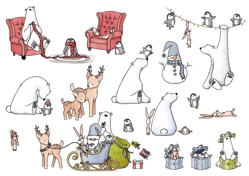 Серия штампов "Северный полюс" по иллюстрациям Лизы Гланц.