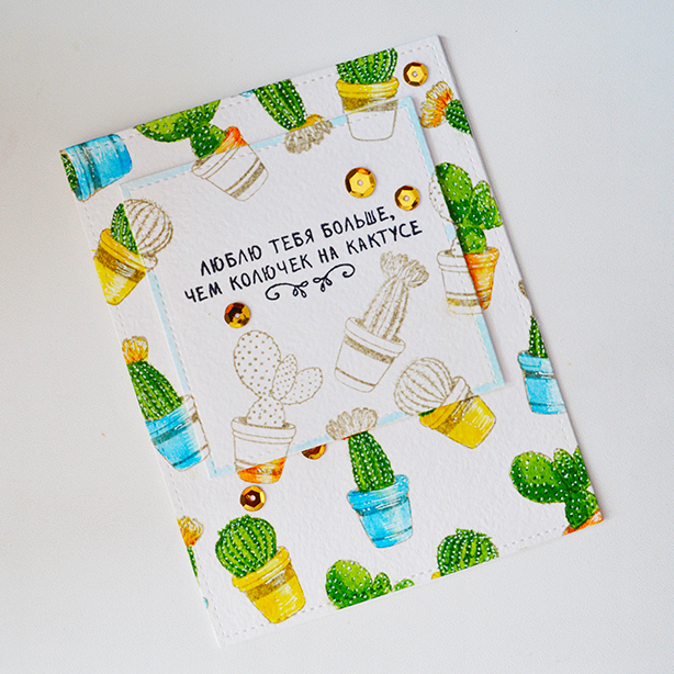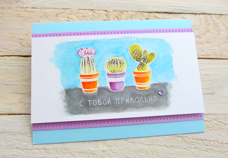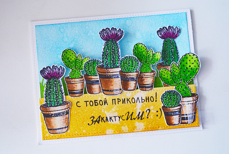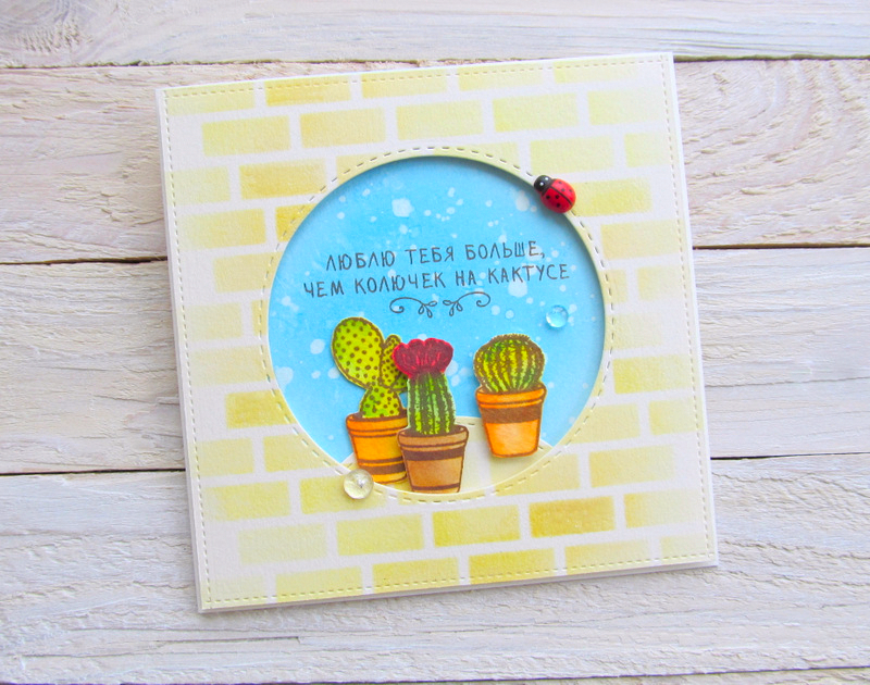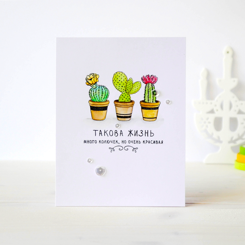 Штампы с кактусами для открыток в стиле CAS, не забудьте про надписи для них.