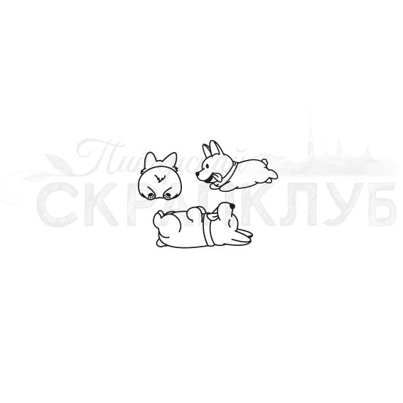 Прозрачный фотополимерный штамп для скрапбукинга. В наборе 3 штампа. Размер спящей собаки 2.4х1.1 см
