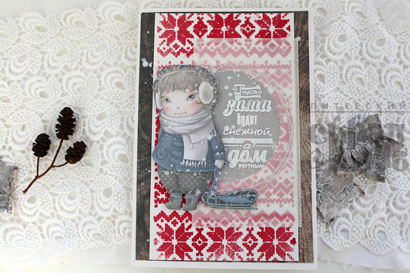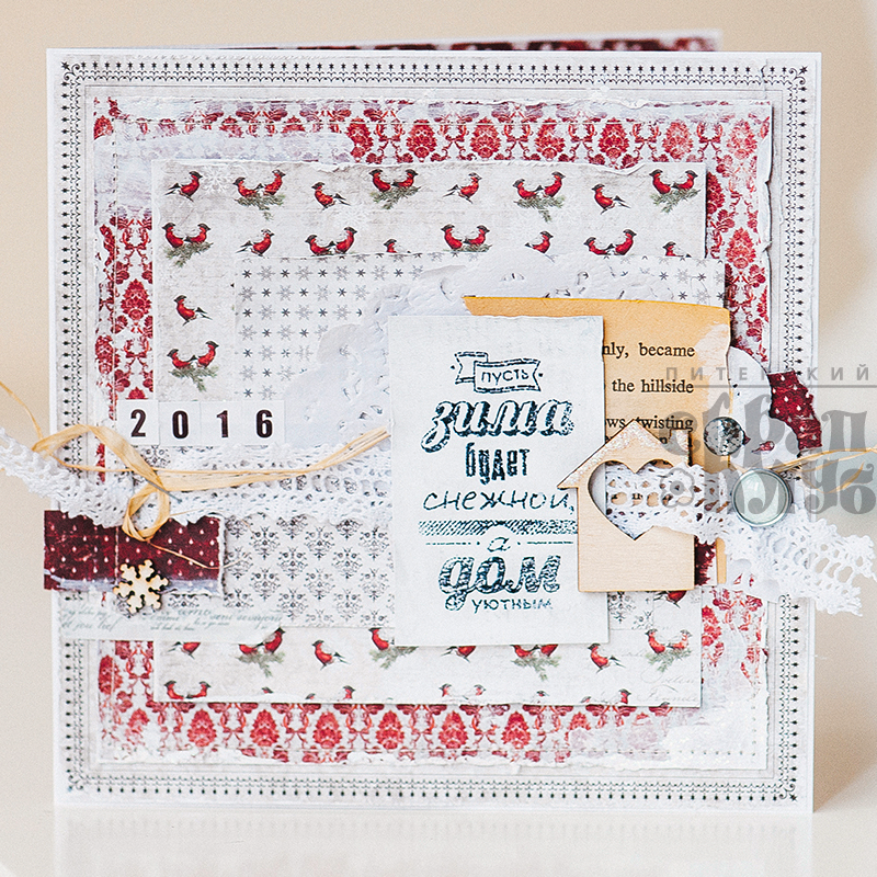 Пусть зима будет снежной, а дом уютным - этот штампик задаст определенный зимне-уютный тон вашей открытке. Попробуйте сделать ее белыми чернилами на крафте или черной бумаге.