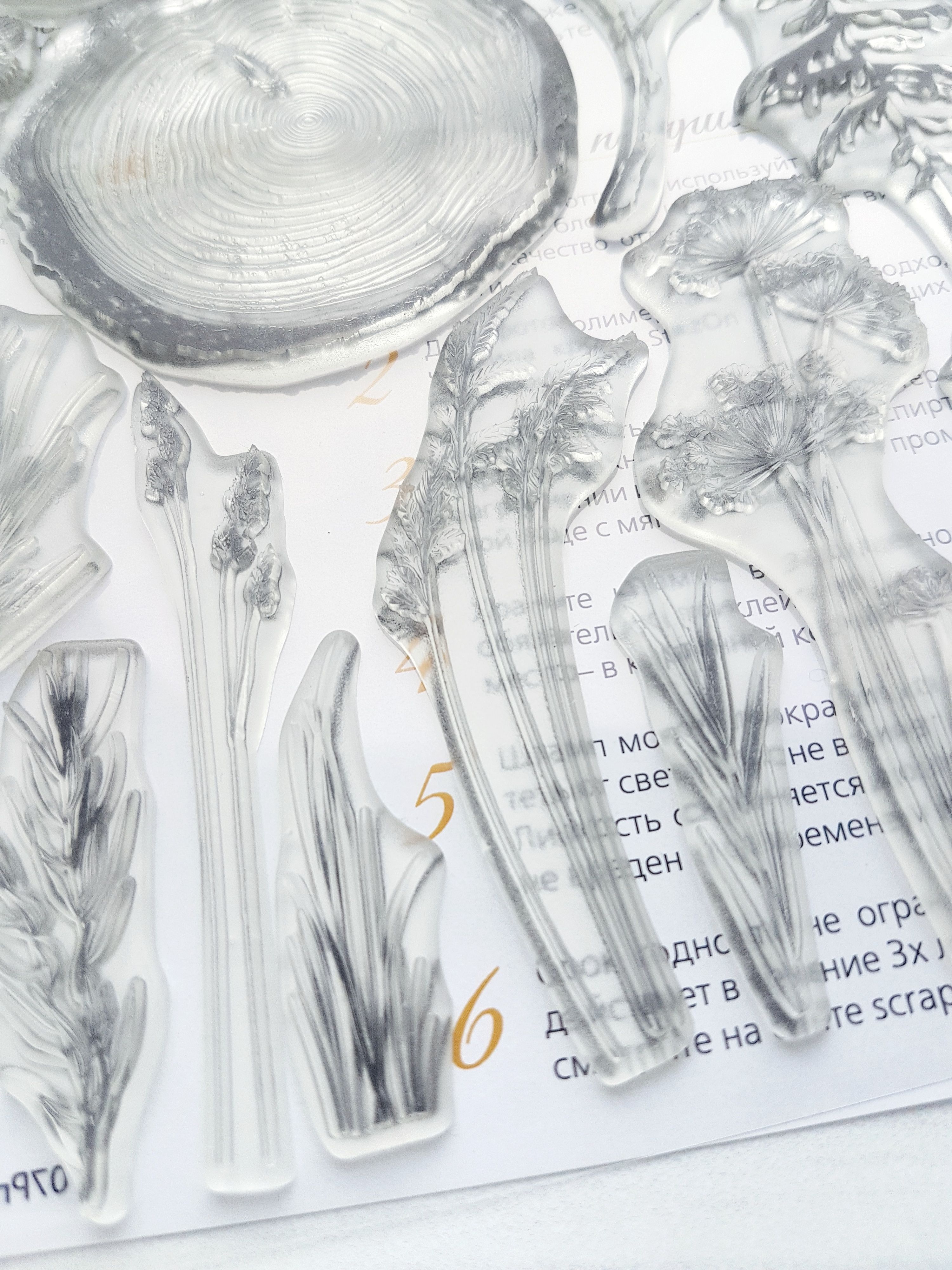 Набор прозрачных полимерных штампов для скрапбукинга в папке-пленке 15х20 см. Включает 18 штампа.