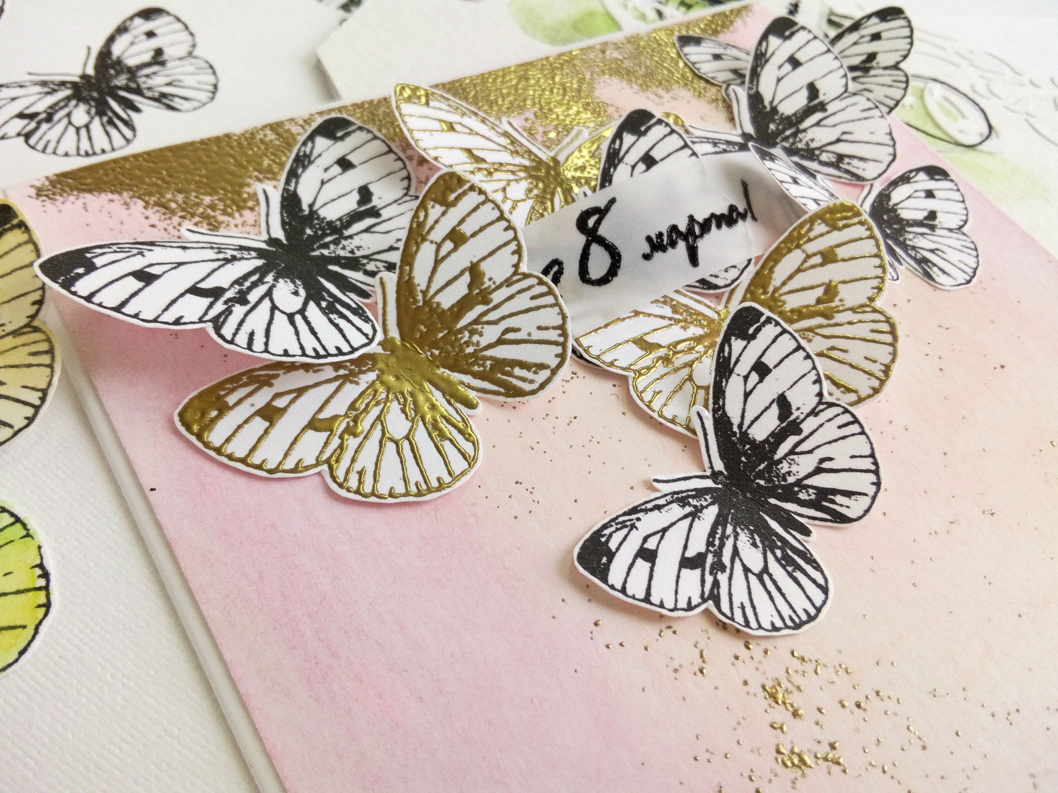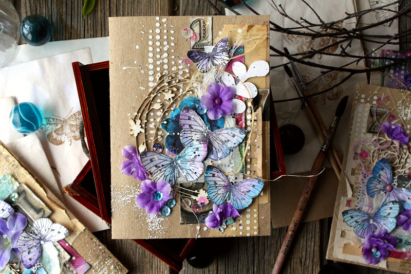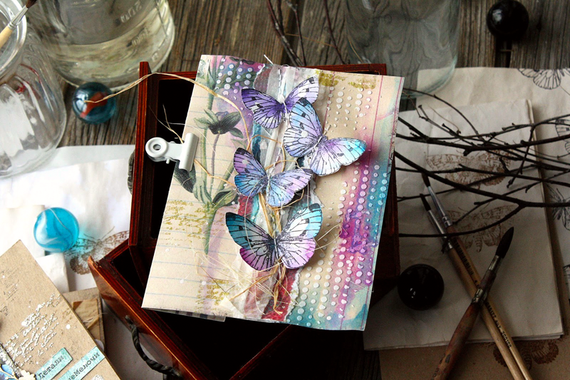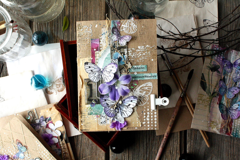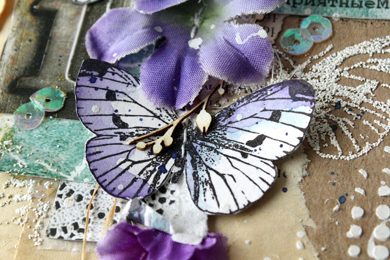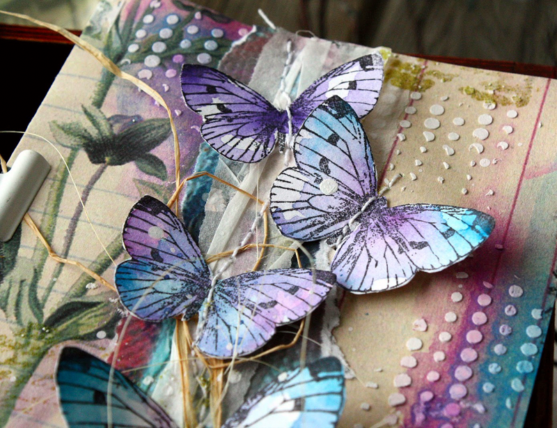 Рисунок подходит для штампинга на кальке и страницах старых книг. Интересный прием - расположить по вертикали оттиски трех разных размеров. Или сделать многослойную бабочку из вырезанных оттисков (верхний сделан четкими темными чернилами, нижние наоборот светлые, только чтобы был обозначен контур для вырезания).