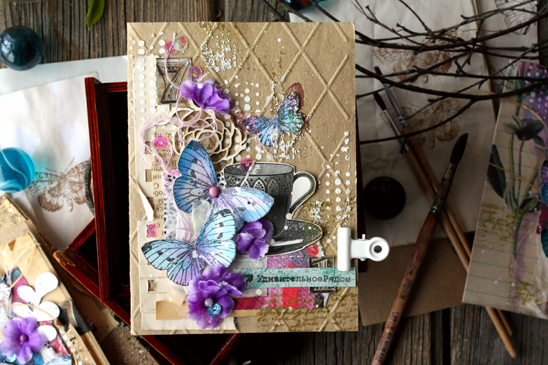Рисунок подходит для штампинга на кальке и страницах старых книг. Интересный прием - расположить по вертикали оттиски трех разных размеров. Или сделать многослойную бабочку из вырезанных оттисков (верхний сделан четкими темными чернилами, нижние наоборот светлые, только чтобы был обозначен контур для вырезания).