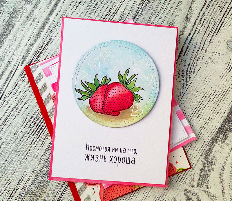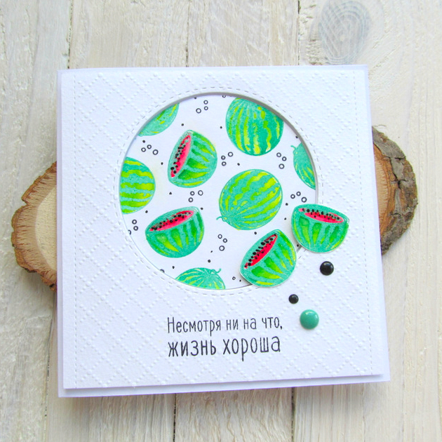 Штамп с надпиью для открыток в стиле КАС - несмотря ни на что жизнь хороша.